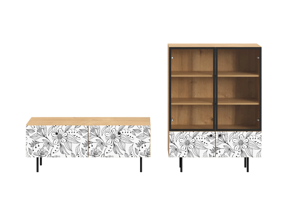 Ножки металлические, Корпус - Робиния Брэнсон, Фасад - Стекло/Принт Flower