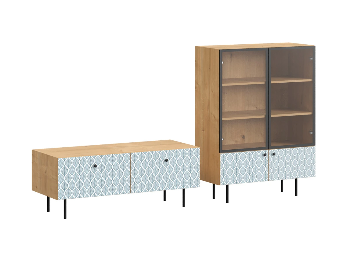 Ножки металлические, Корпус - Робиния Брэнсон, Фасад - Стекло/Принт Leaf