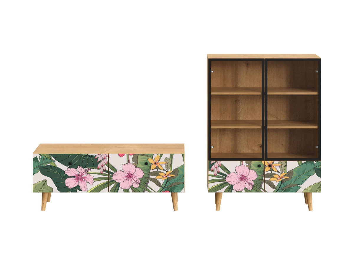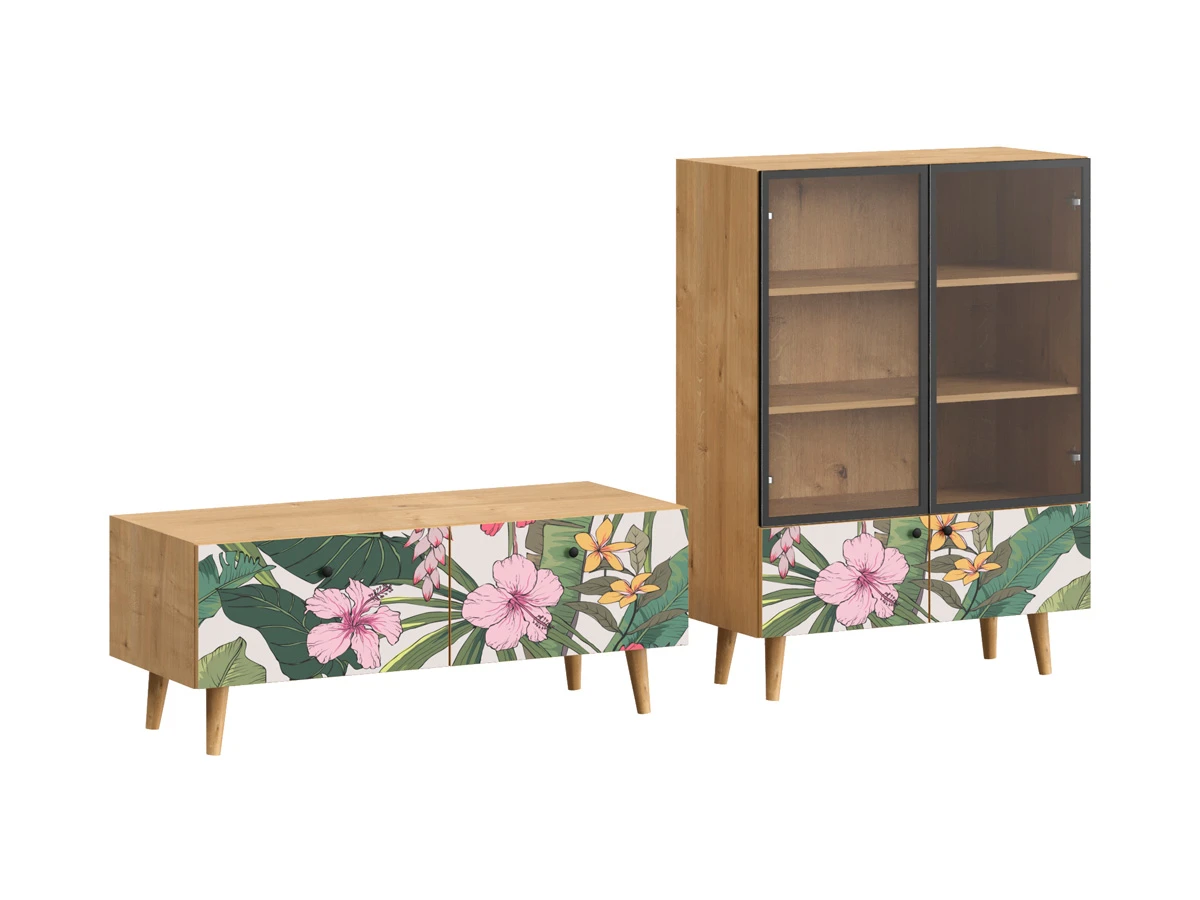 Ножки бук, Фасад - Стекло/Принт Tropics, Корпус - Робиния Брэнсон