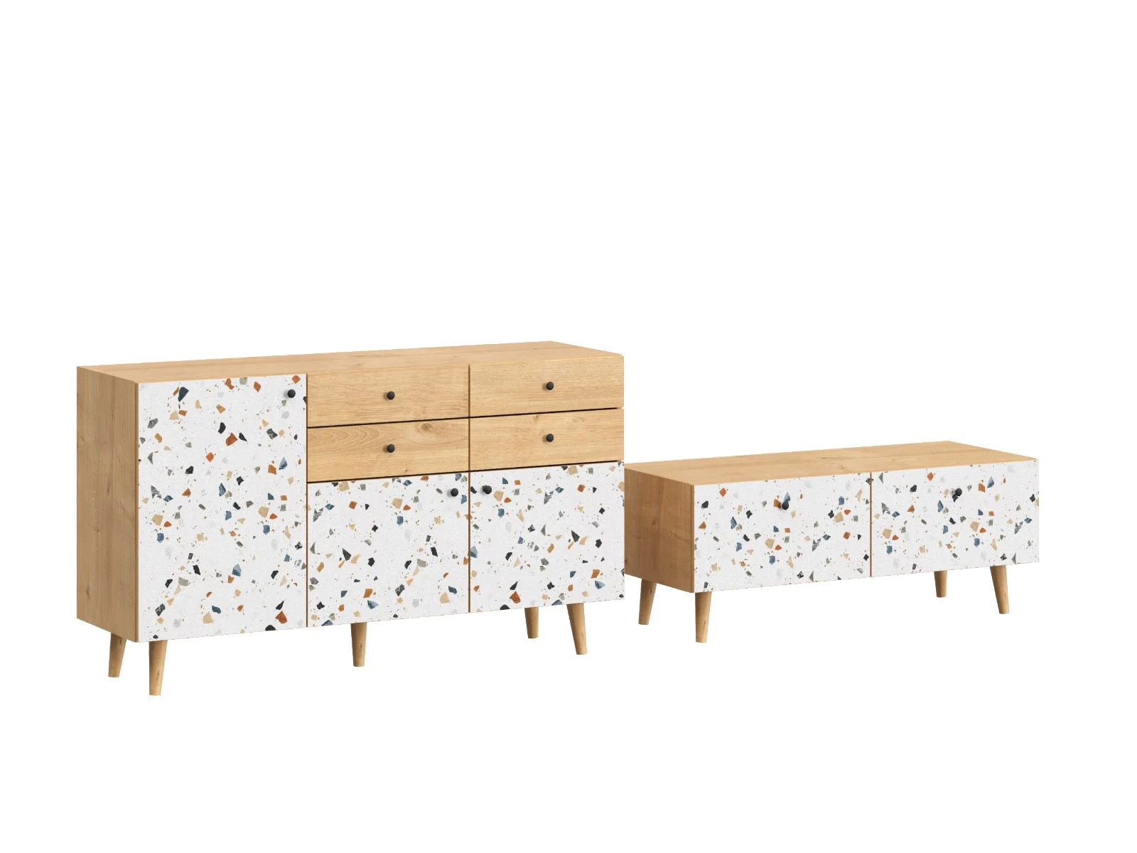 Корпусная мебель, с которой можно составить множество решений для гостиной, детской, кухни, спальни, прихожей, рабочей зоны. Комоды, шкафы, тумбы, столы, витрины, полки, серванты характеризуются универсальностью, многозадачностью, надёжными устойчивыми конструкциями. Имеют выразительный внешний вид, вдохновленный направлением ретро. Смотрятся легко и воздушно за счет деревянных ножек, минимального количества декоративных элементов, спокойных природных оттенков.