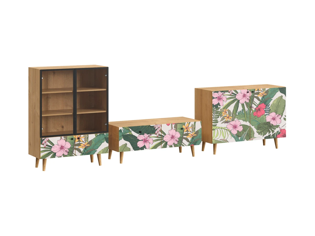 Ножки бук, Фасад - Стекло/Принт Tropics, Корпус - Робиния Брэнсон