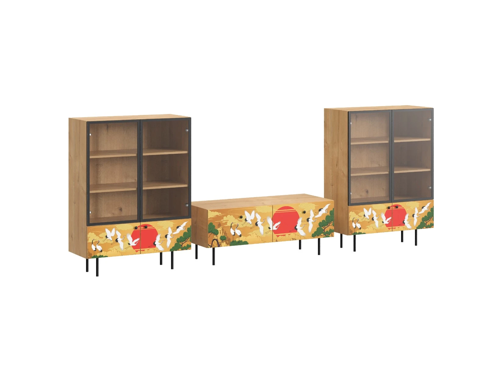 Фасад - Стекло/Принт Sunrise, Ножки металлические, Корпус - Робиния Брэнсон