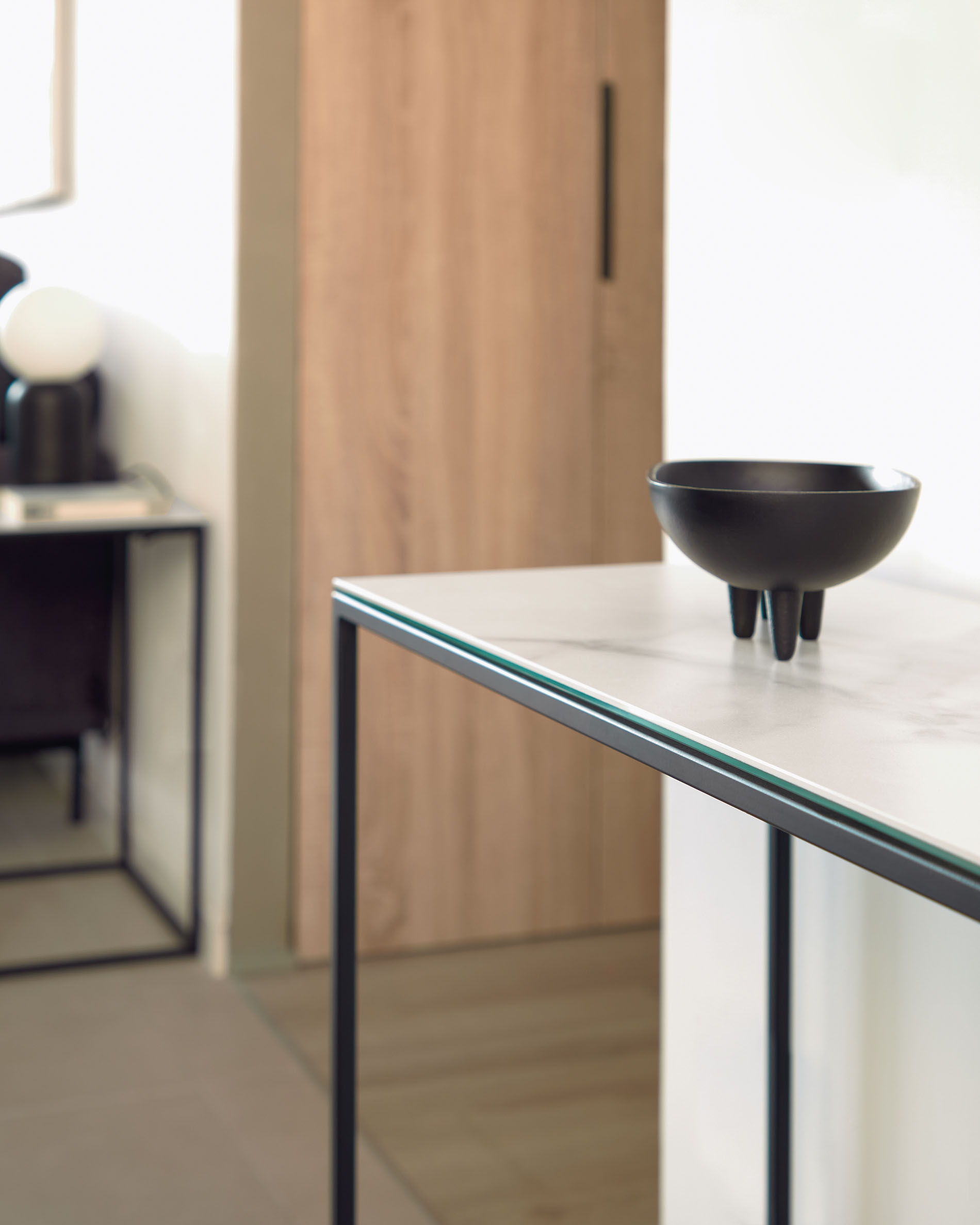 Консоль Rewena от фабрики La Forma – керамическая столешница на стальной основе.