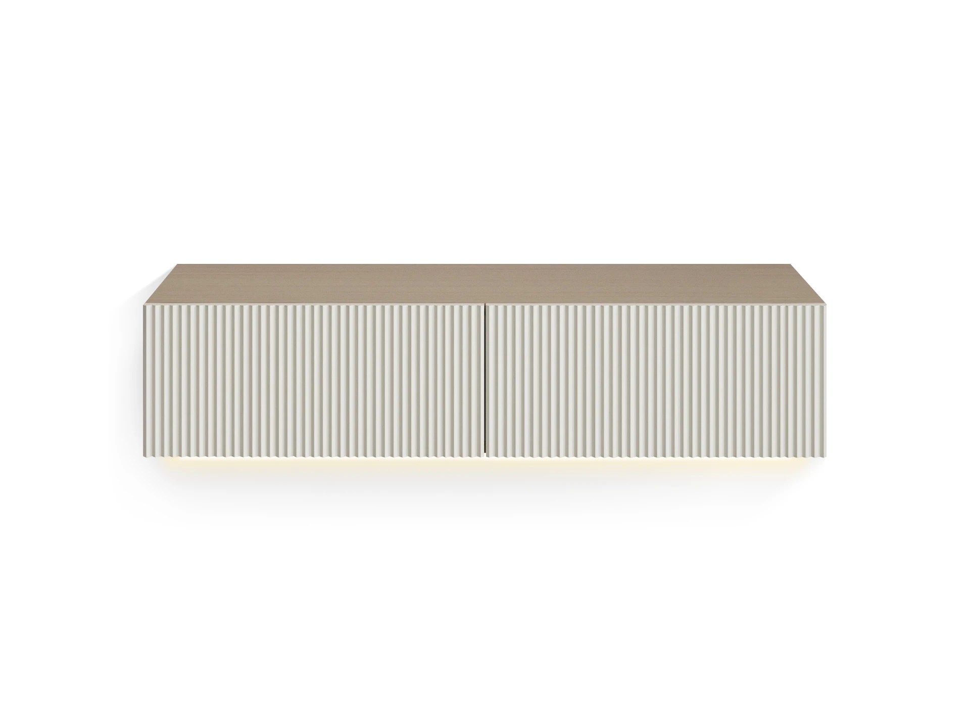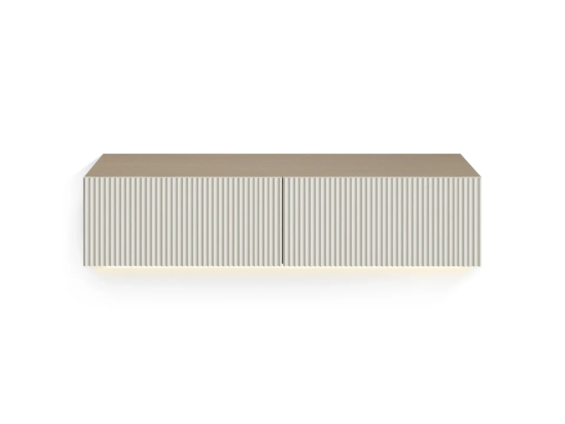 Вдоль задней кромки нижнего щита установлена светодиодная лента в профиле. Лента имеет три цвета свечения: теплый, холодный, нейтральный. Для подключения светильника необходимо отдельно приобрести комплект подключения подсветки.