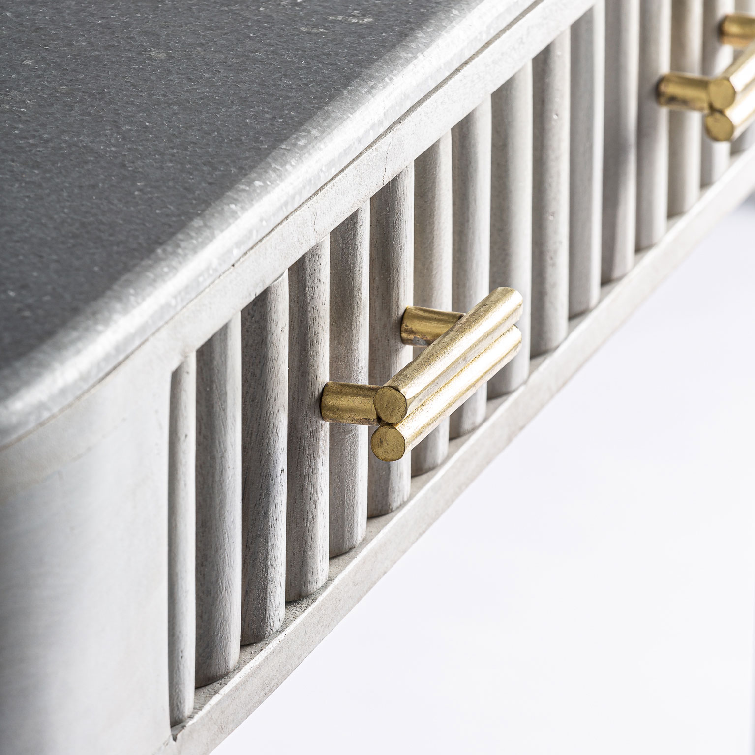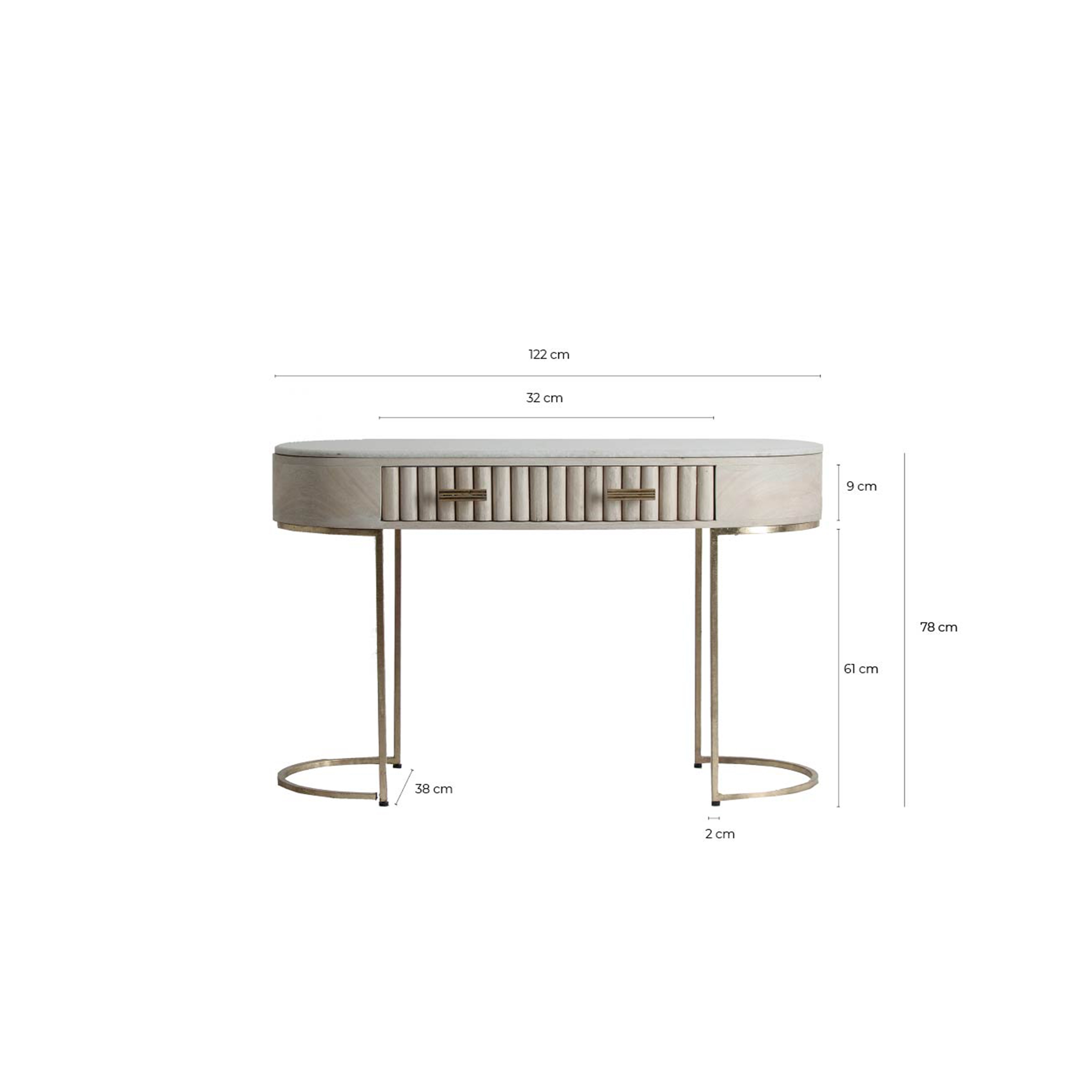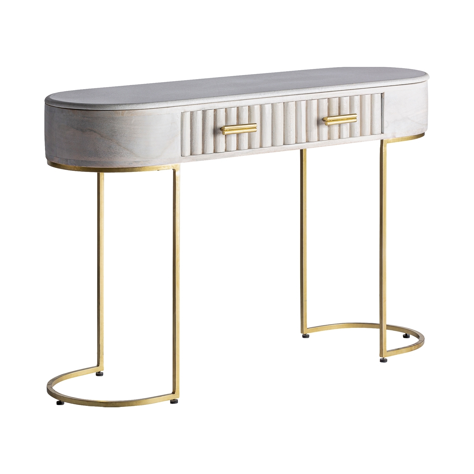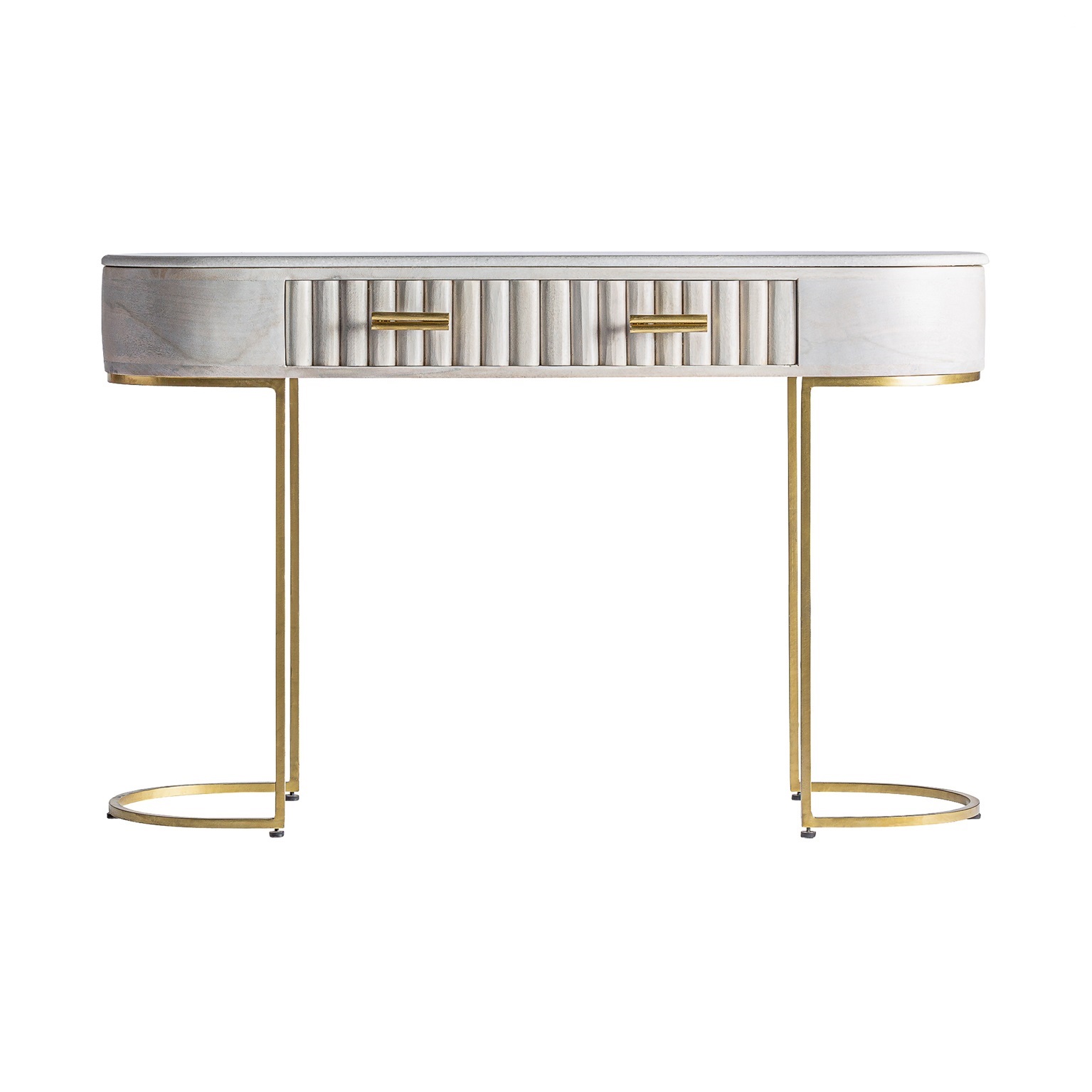 Консольный стол, кремовый/золотой цвет, стиль арт-деко. Изготовлен из дерева манго в сочетании с железом и латунью. Съемный продукт.