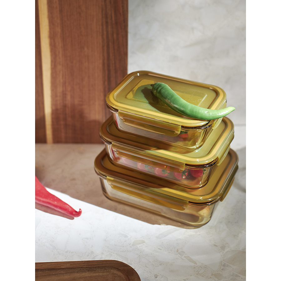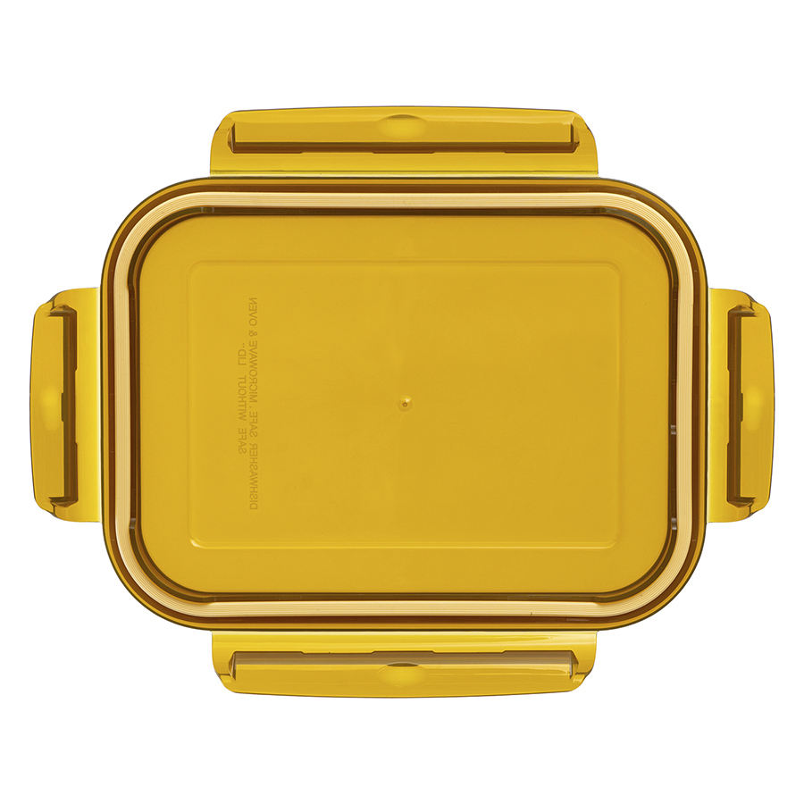 Емкость выполнена из боросиликатного стекла. Материал обладает повышенной стойкостью к механическим повреждениям, температурным перепадам, безвреден для здоровья и окружающей среды, за счет чего идеально подходит для контакта с пищей. Полипропиленовая крышка плотно прилегает благодаря специальным защелкам, расположенным с четырех сторон.