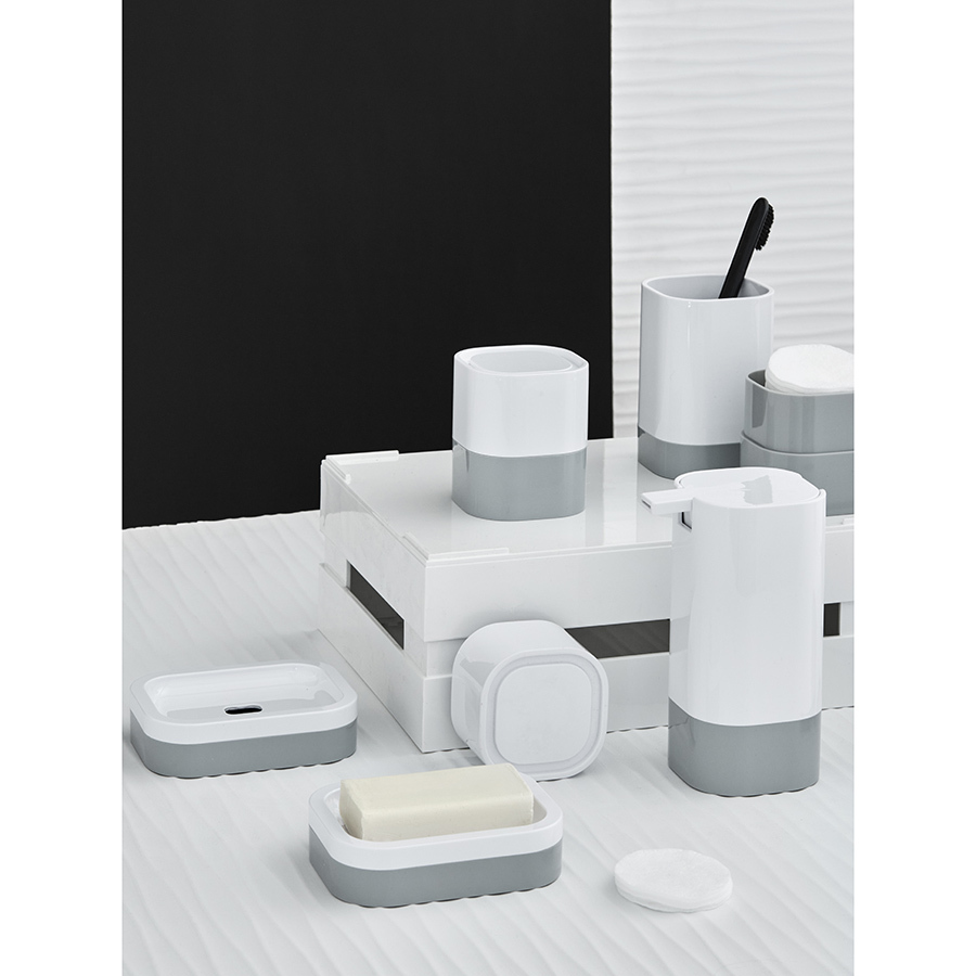 Материалы: пластик, акрил. Размеры: 7,4х7,4х8,7 см. Объем: 250 мл. Цвет: белый/серый.