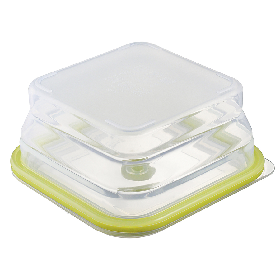 Материал: пищевой силикон. Размеры: 15,5х15,5х7,5 см. Размеры в сложенном виде: 15,5х15,5х3,5 см. Объем: 900 мл. Цвет: зеленый.