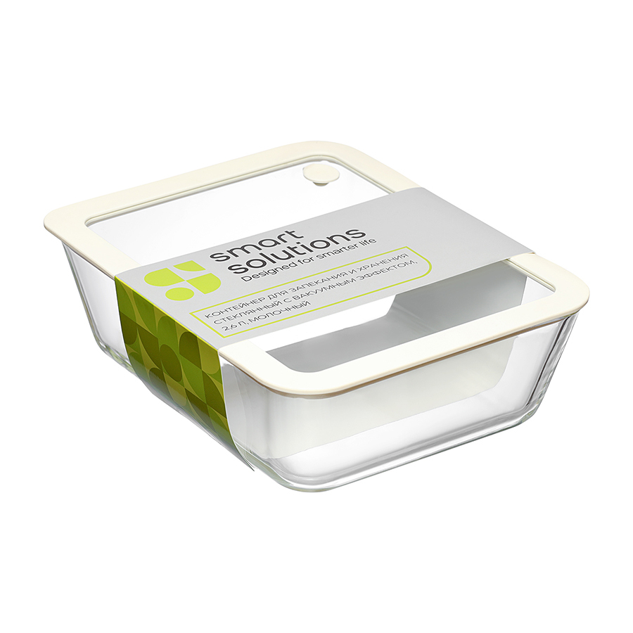 Материалы: боросиликатное стекло, силикон. Размеры: 20,5х25х8 см. Объем: 2,6 л. Цвет: молочный.