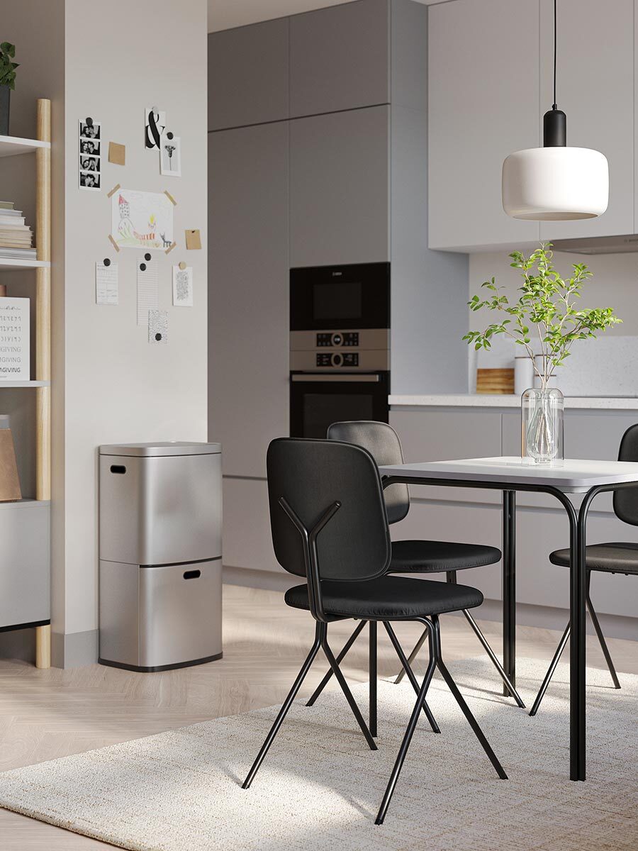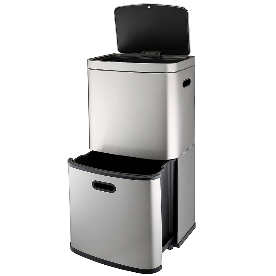 - Нижний отсек открывается вручную. Если нет необходимости в сортировке мусора, в нем можно хранить мусорные пакеты.