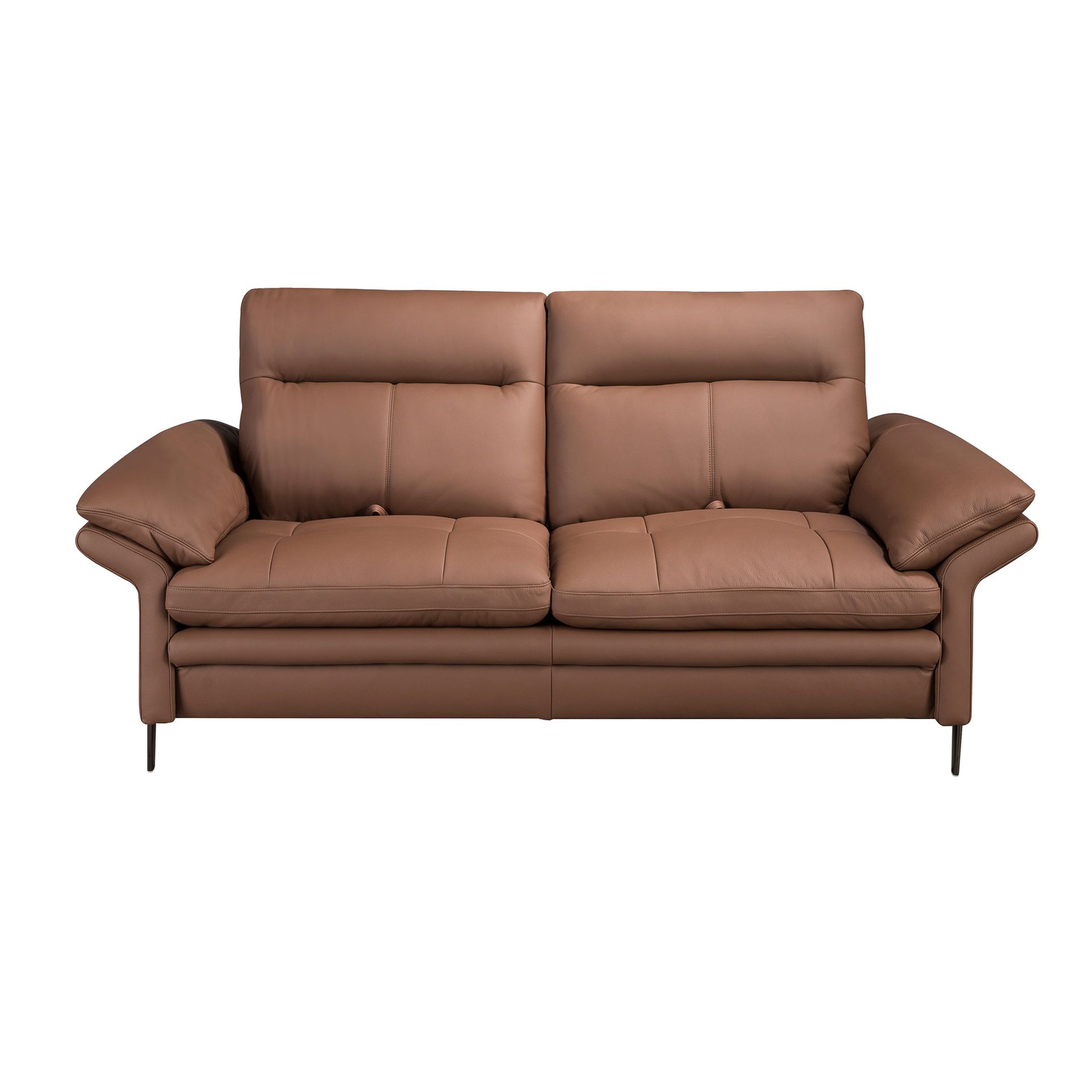 2-местный диван современного дизайна, обитый коричневой воловьей кожей. Благодаря своему стилю и ножкам из темной хромированной нержавеющей стали этот диван привнесет в ваш дом нотку авангарда и элегантности, которую вы ищете.