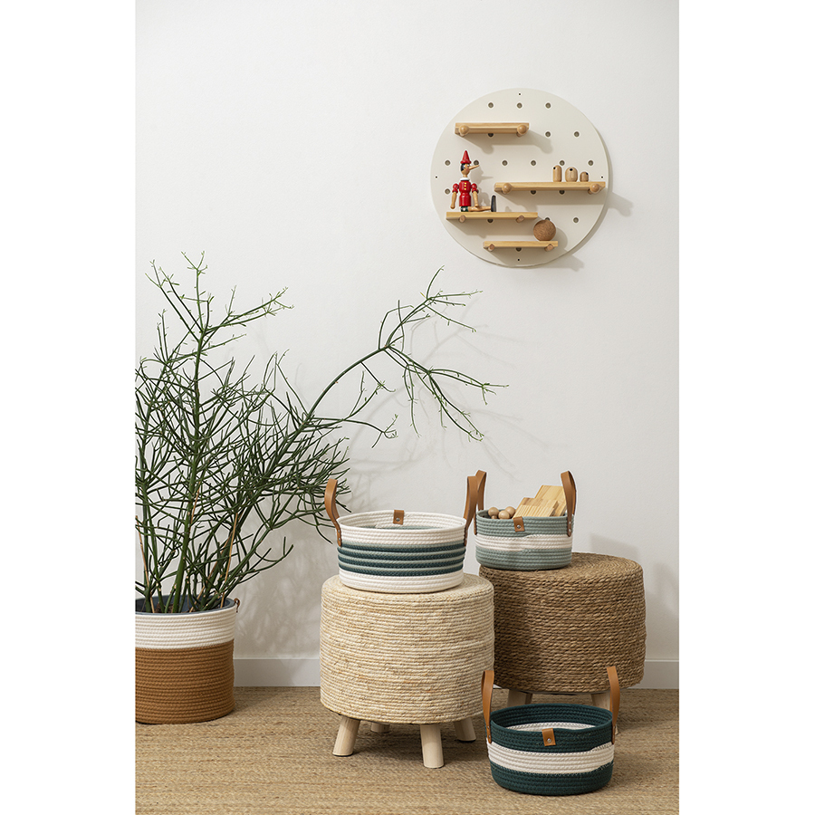 Корзина Helly – прекрасный вариант для хранения различных предметов. Благодаря стильному дизайну такой контейнер отлично вписывается в современный интерьер гостиной, спальни или прихожей. Изделие выполнено из хлопковой нити с добавлением полиэстера, что гарантирует ему прочность, устойчивость к истиранию и привлекательный вид на протяжении всего срока службы. Изюминку корзине придают плетеный корпус и ручки из полиуретана, которые также обеспечивают удобную переноску.