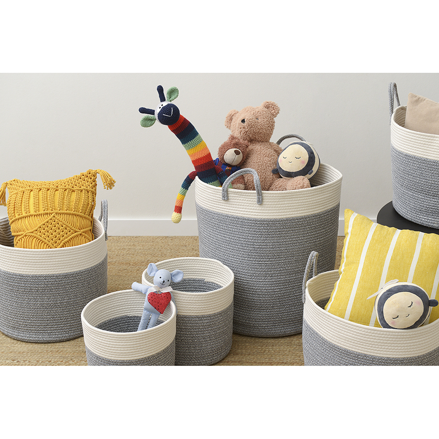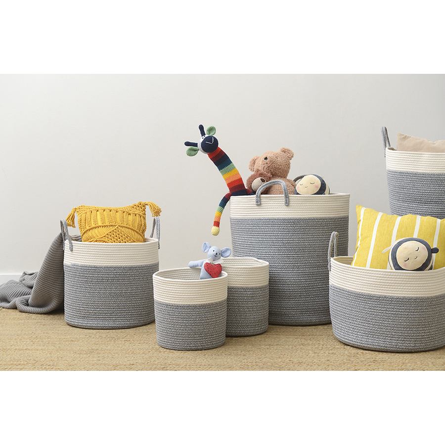 Материал: хлопковый шпагат мягкого плетения. Диаметр: 48 см. Высота: 35 см. Цвет: кремовый/светло-серый.