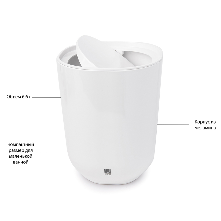 Корзина оснащена удобной вращающейся крышкой. Объем: 6.6 л.