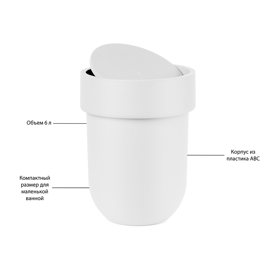 Корзина оснащена удобной вращающейся крышкой. Объем: 6 л.