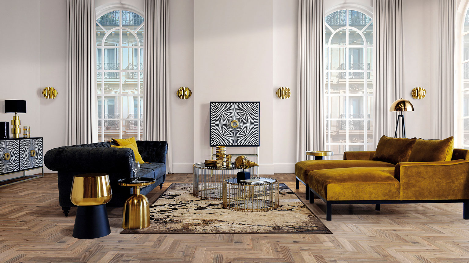 Экзотика и вдохновляющая колониальная атмосфера исходят от этого ковра из синели и вискозы. Изношенный и состаренный вид делает ковер впечатляющим в комнате и вдохновляет дом на смелые и контрастные стили.