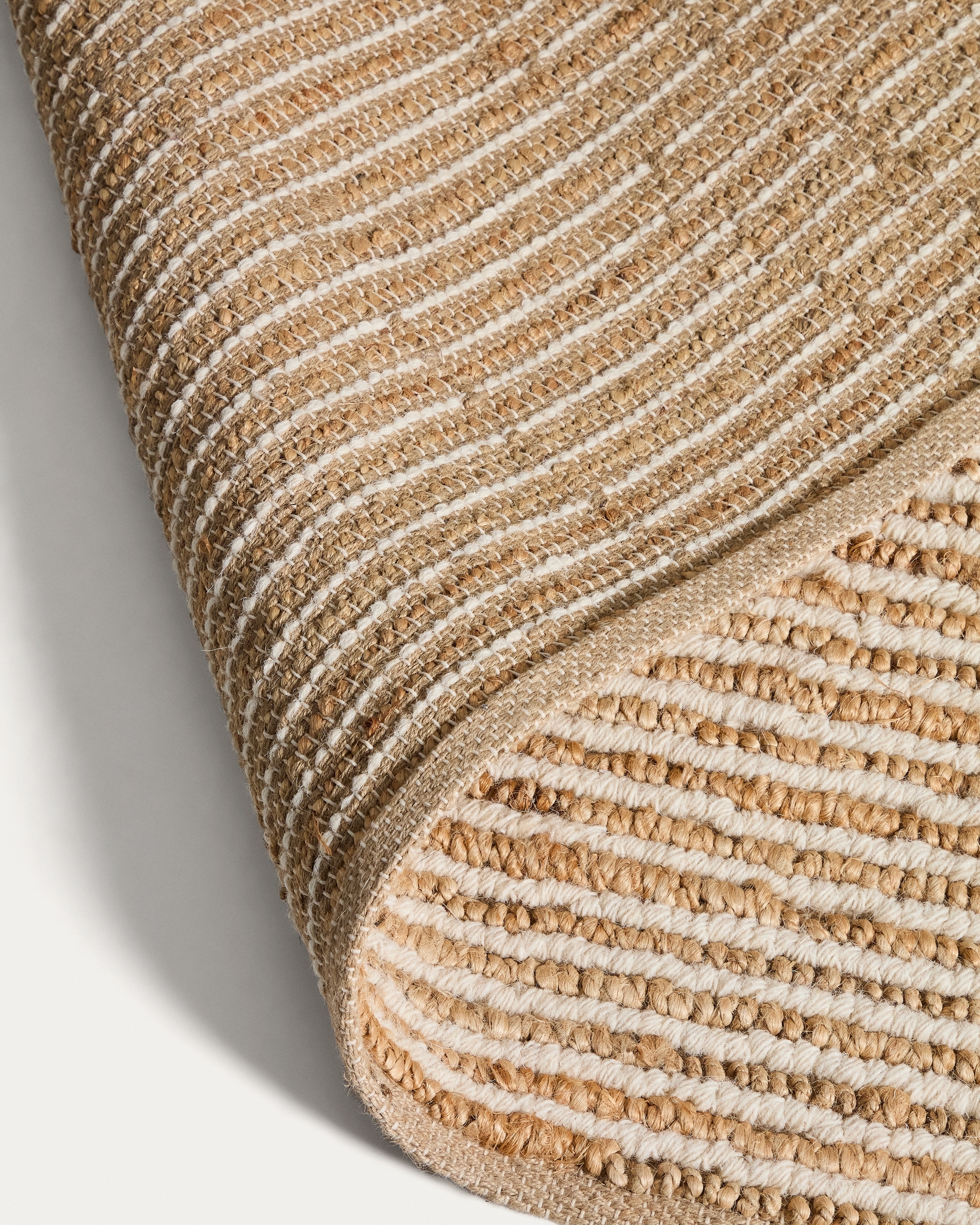 Ковер Derule сочетает в себе шерсть и джут, создавая текстуру и характер. Он соткан вручную, что обеспечивает плотную и солидную ткань. Отделка отражает естественный вид материалов и подчеркивает неровности, присущие ручному ткачеству. Ручная работа и использование натуральной пряжи делают каждый ковер эксклюзивным, с небольшими вариациями в плетении, придающими ему аутентичность. Он легко вписывается в различные интерьеры, всегда сохраняя простоту и элегантность.