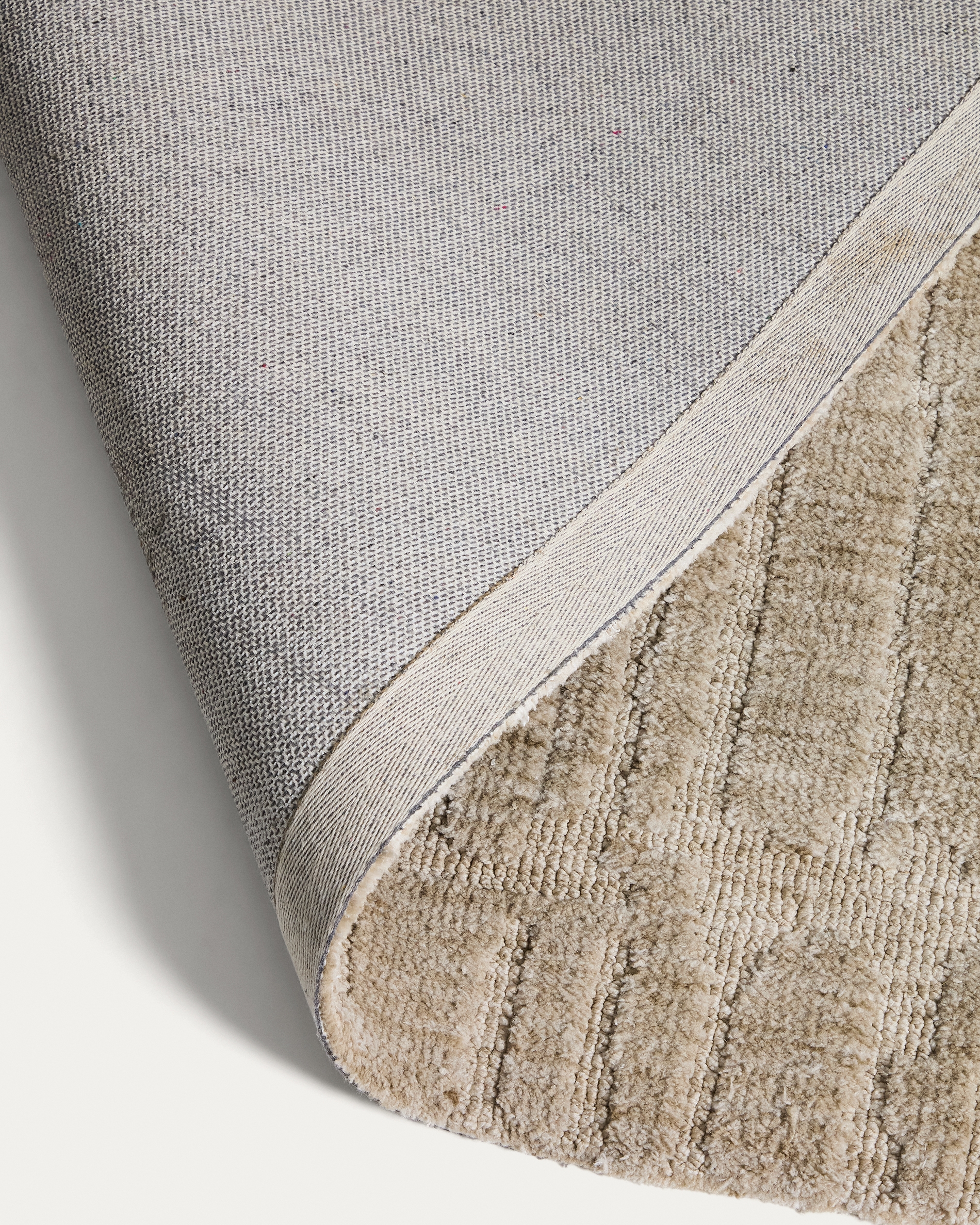Ковер Eriana изготовлен из синтетических волокон, которые обеспечивают мягкость и износостойкость. Его отделка под шерсть воспроизводит текстуру и теплоту натуральных волокон, но при этом отличается более простым и практичным уходом. Благодаря используемым материалам, он подходит для людей, страдающих аллергией, предлагая комфортную и легко чистящуюся поверхность. Изготовленный вручную, каждый ковер может иметь незначительные вариации, что делает его уникальным.