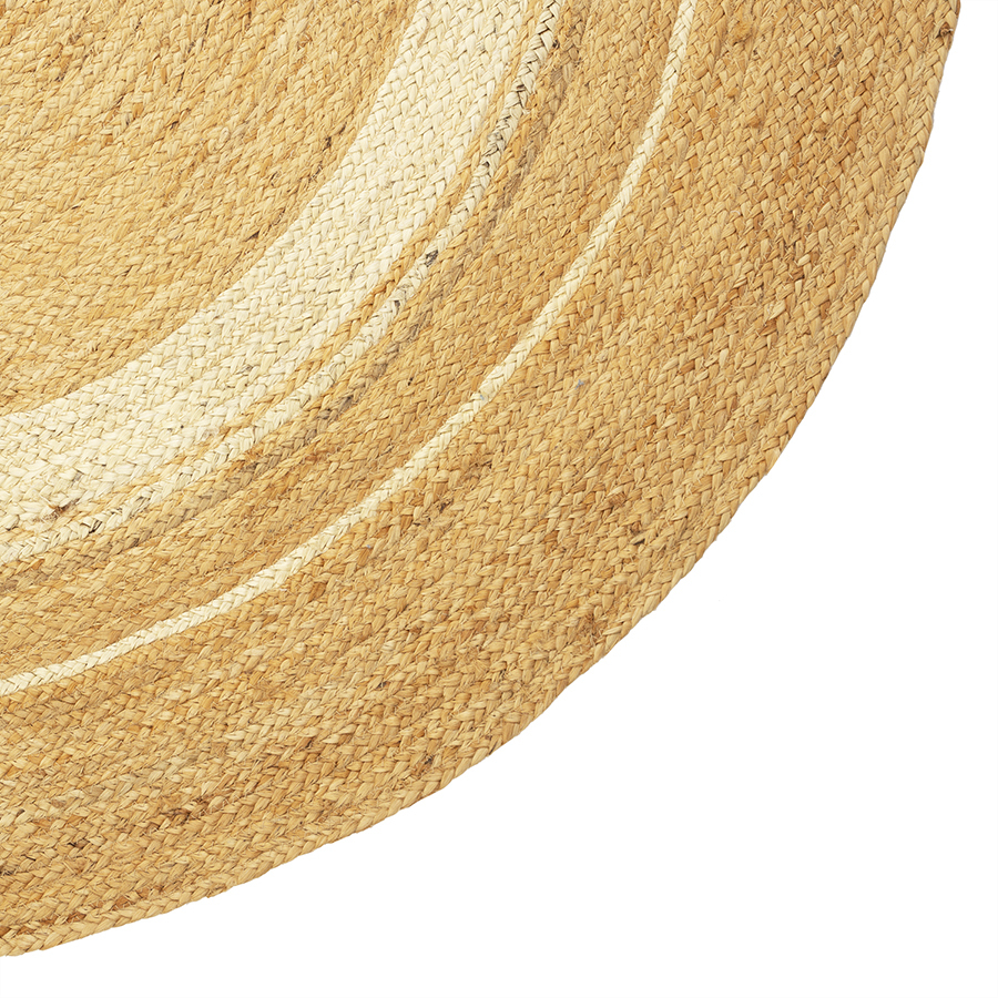 Ковер из джута круглый из коллекции Ethnic – отличное сочетание традиционного дизайна и натуральных материалов. Естественный оттенок и отсутствие дополнительных элементов в виде бахромы и сложных узоров делают это напольное покрытие универсальным. Такой ковер прекрасно вписывается в современные интерьеры и эклектичные пространства, создавая ощущение уюта и тепла домашнего очага. Белые вставки освежают дизайн и помогают в расстановке цветовых акцентов в оформлении. Джутовые волокна отличаются высокой прочностью, могут выдерживать большие нагрузки и сохраняют первоначальную форму на протяжении долгого времени. Это гарантирует готовому изделию практичность и долговечность. Материал не вызывает аллергических реакций, не накапливает статическое электричество и легко очищается.