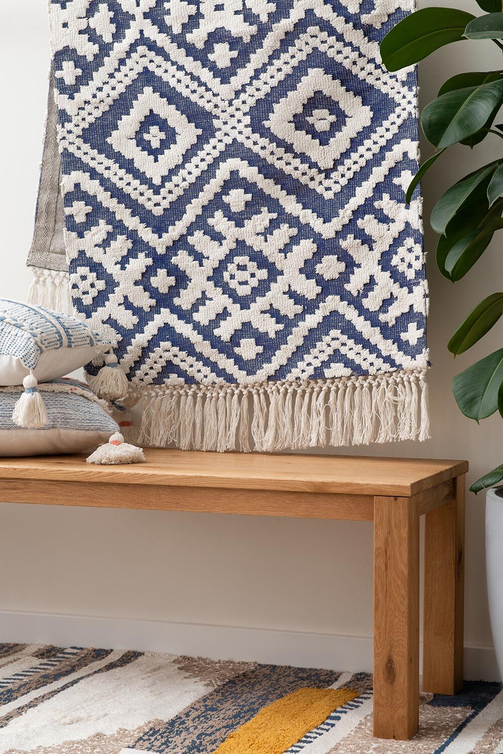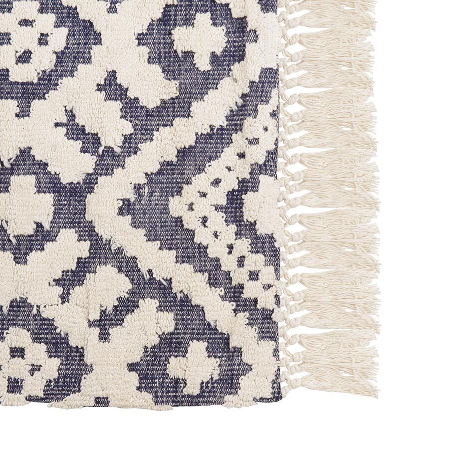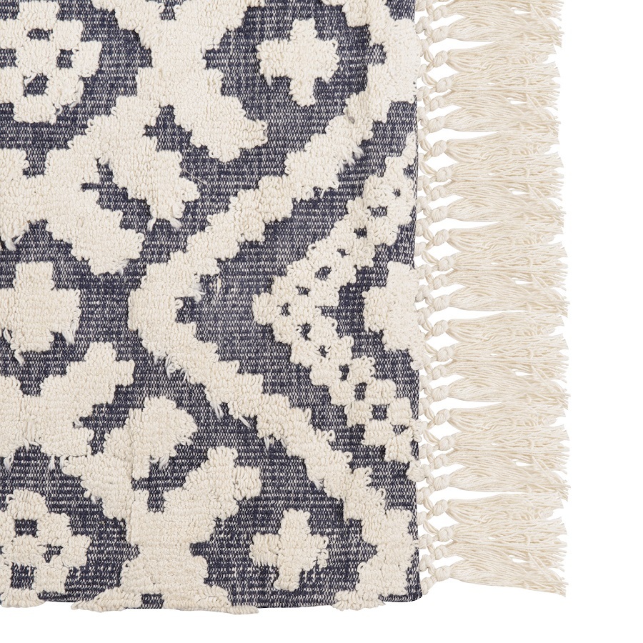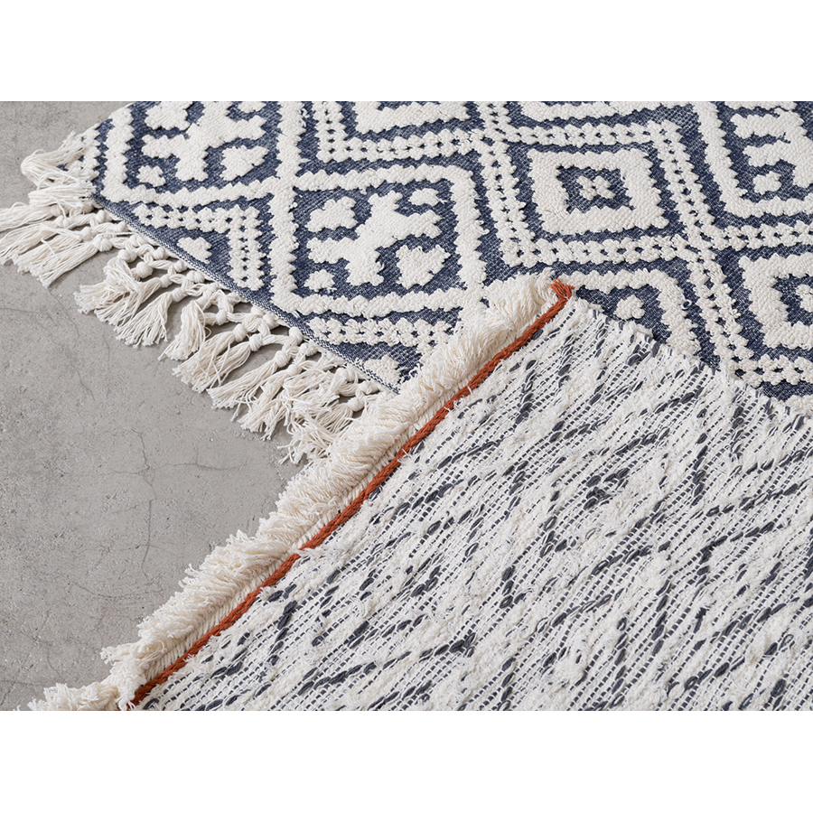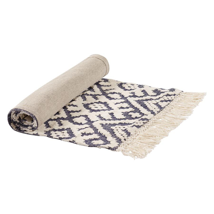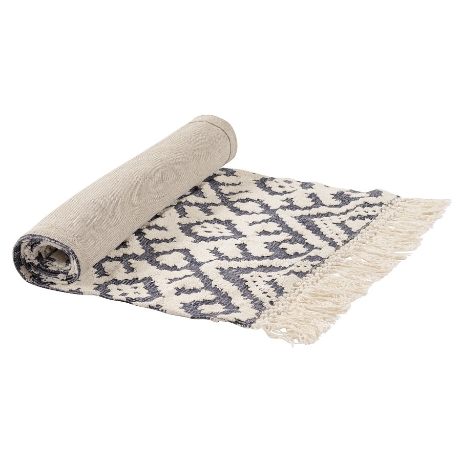 Ковер из хлопка Jaipur из коллекции Ethnic украшен контрастным геометрическим принтом и бахромой. Он органично впишется в скандинавский стиль или разбавит строгий минимализм. Ковер можно повесить на стену в качестве арт-объекта, поместить на пол возле дивана или кровати. Изделие на подкладке, выполнено из прочного высококачественного хлопка, край с изнаночной стороны укреплен киперной лентой, исключающей деформацию. Ковер представлен в нескольких размерах.