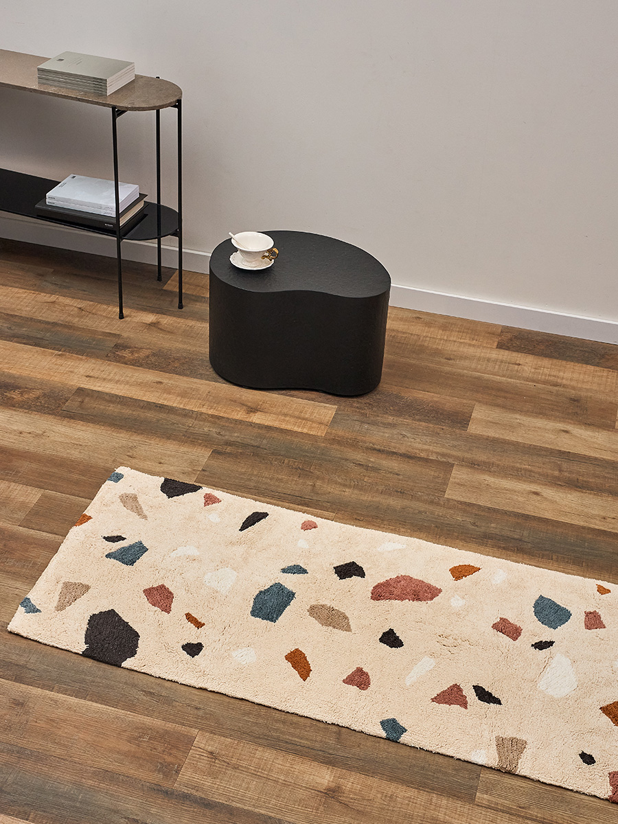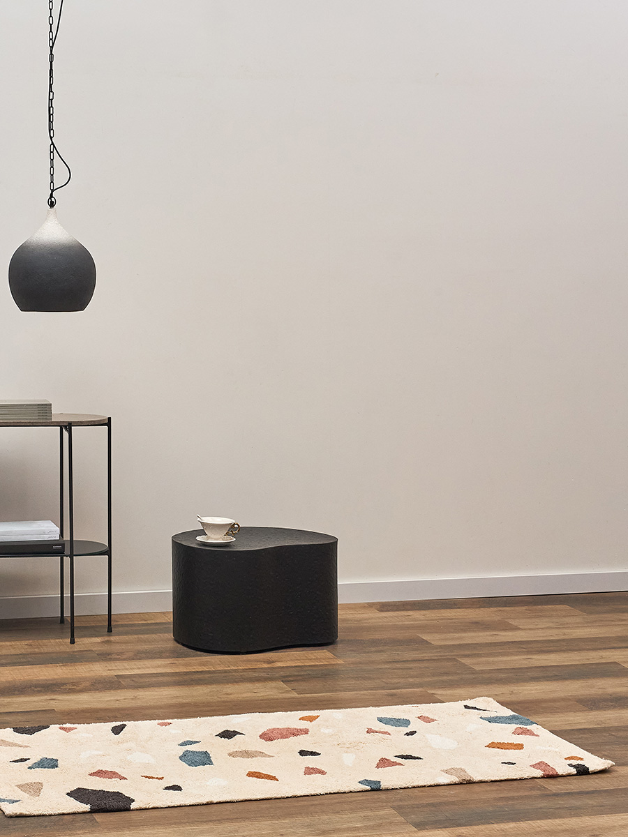 Необычный дизайн ковра Terrazzo Poetry из коллекции Ethnic словно переносит нас в эпоху величественных венецианских дворцов, где каждый элемент рассказывает свою историю. Принт в виде вкраплений мраморной крошки, стеклянных фрагментов и камней создает неповторимую картину, напоминающую старинную мозаику. Этот ковер станет отличным решением для тех, кто с трепетом относится к уюту и комфорту своего дома.