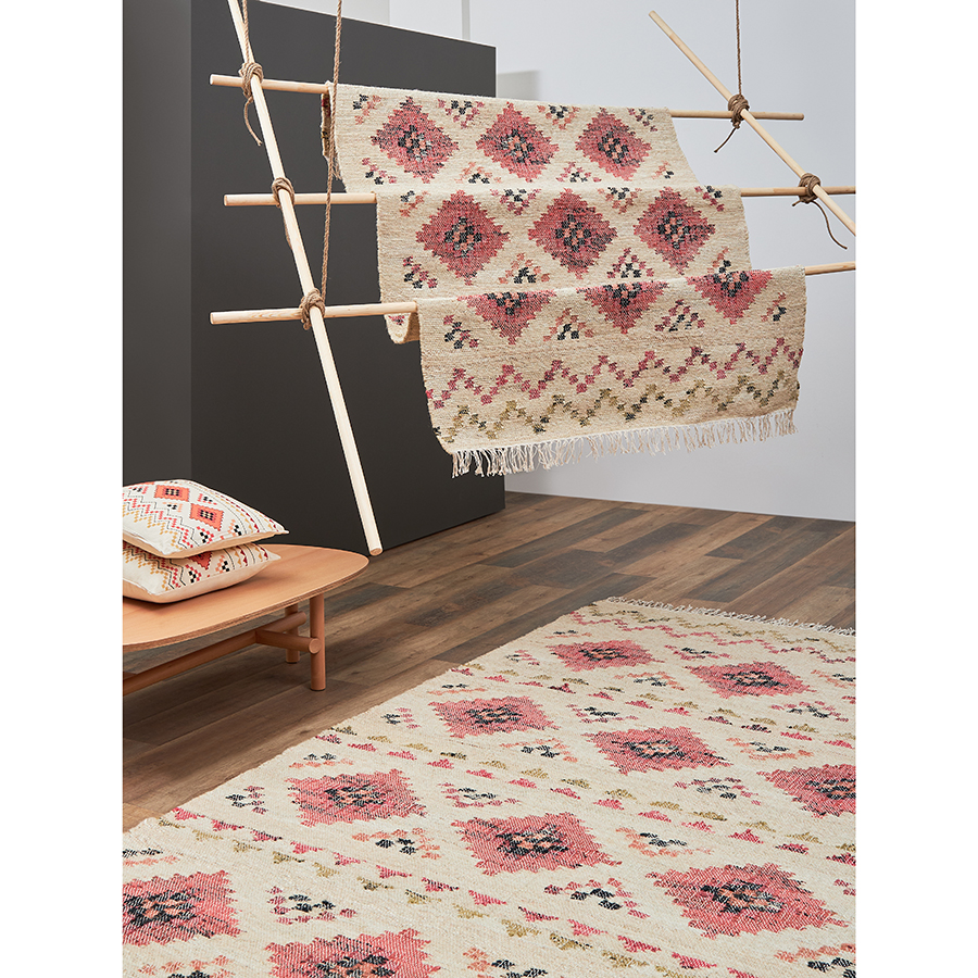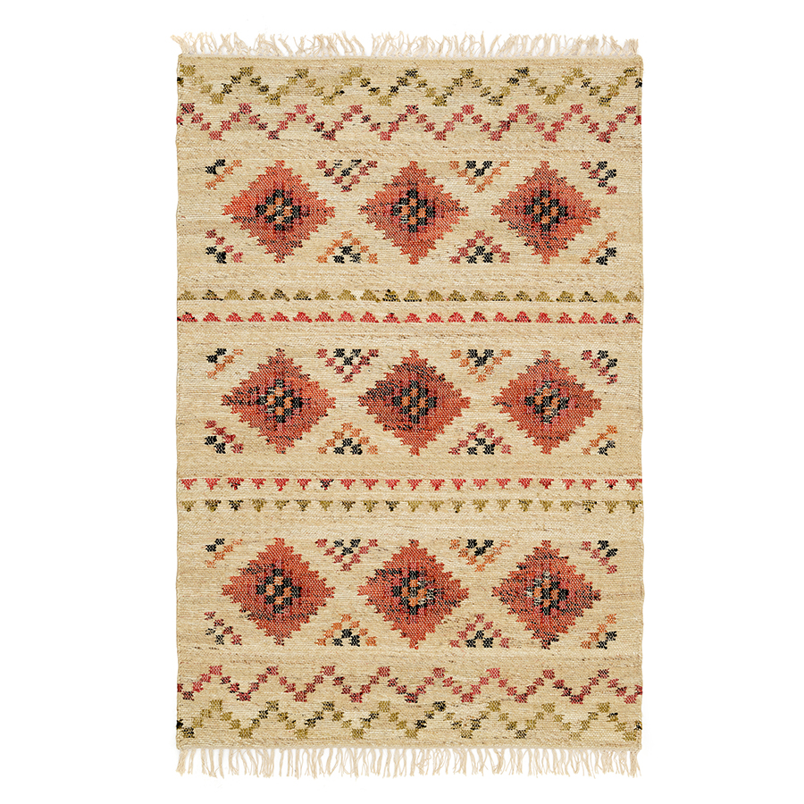 - Ковер с контрастным узором в этническом стиле привлекает внимание и может использоваться в качестве акцентного элемента.