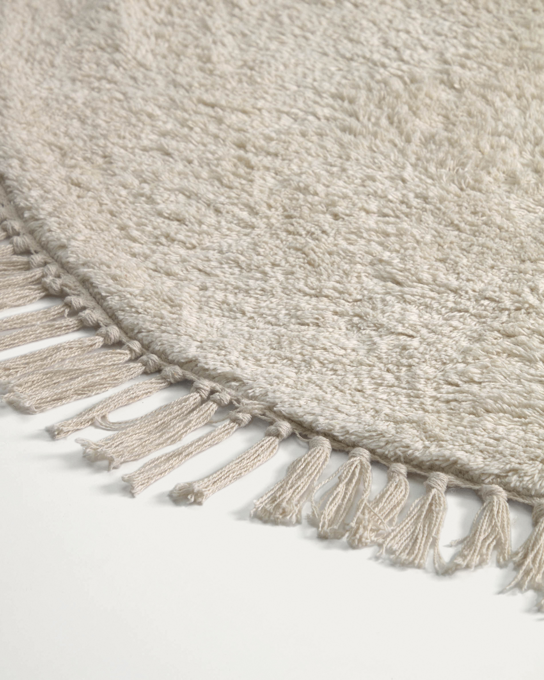 Фактура ковра мягкая, с небольшим ворсом. Край окантован и декорирован бахромой длиной 5 см.