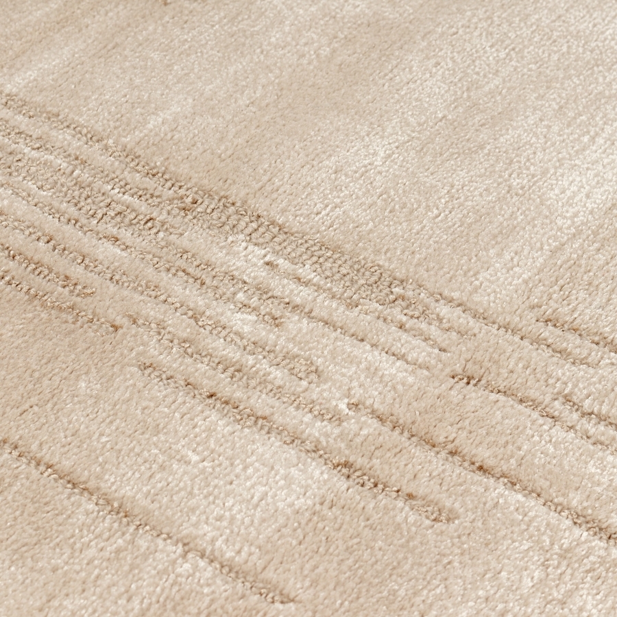 Выполненный вручную мастерами Jaipur Rugs, этот ковер сочетает в себе натуральную красоту шерсти и деликатный блеск вискозы, создавая атмосферу роскоши и спокойствия.