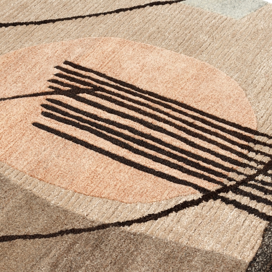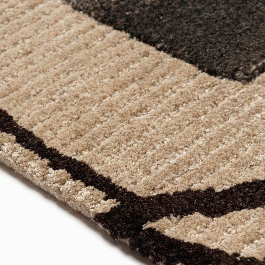 Ковер Wye 180х270 и сочетание, где нежность встречается с контрастом, создавая завораживающий дуэт! Мягкий переход от светлого тона к теплому бежевому, который внезапно прорезает строгий черный, словно луч света, пробивающийся сквозь тучи.