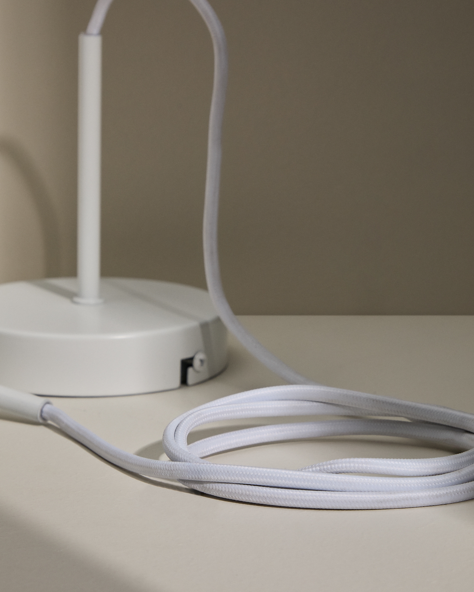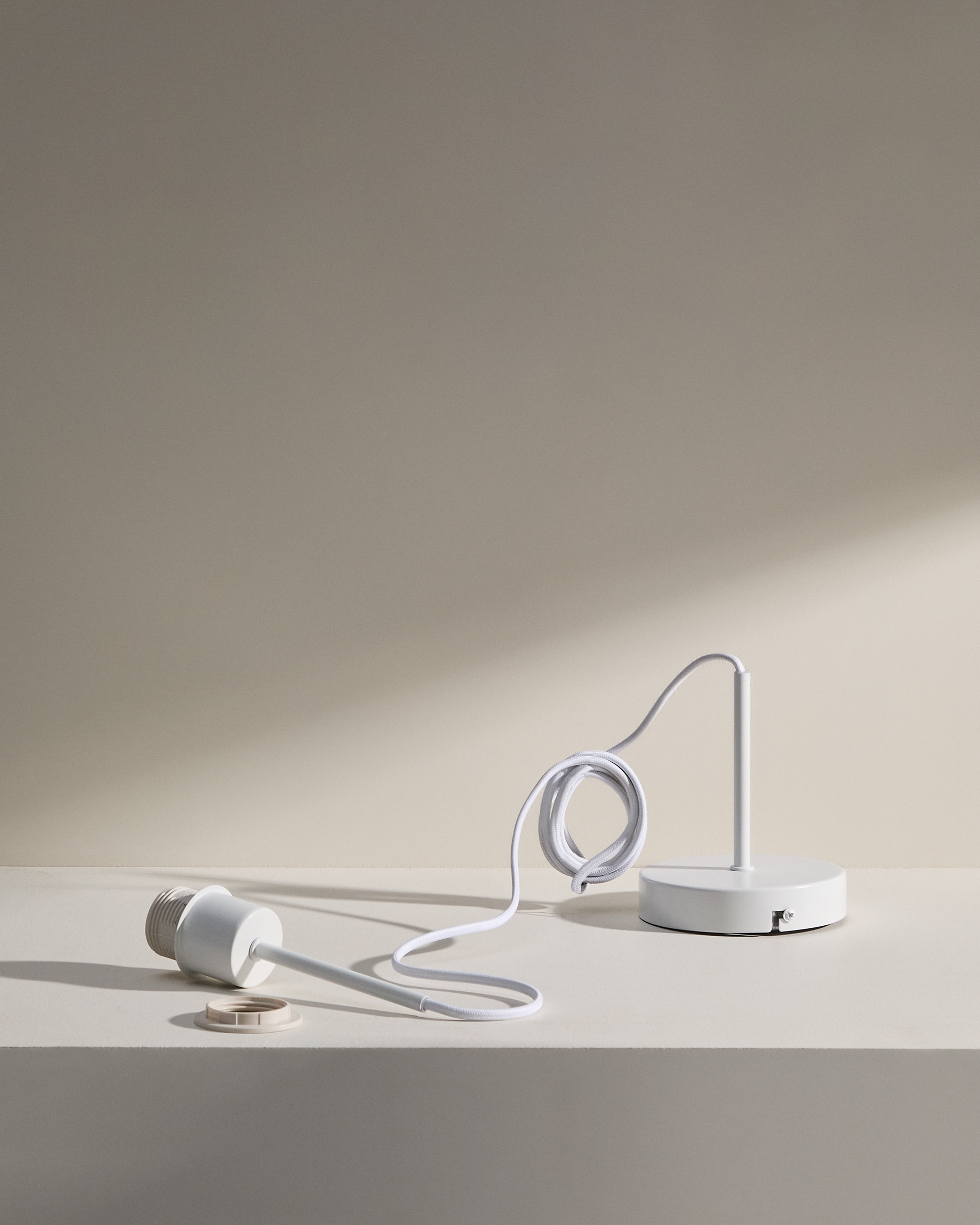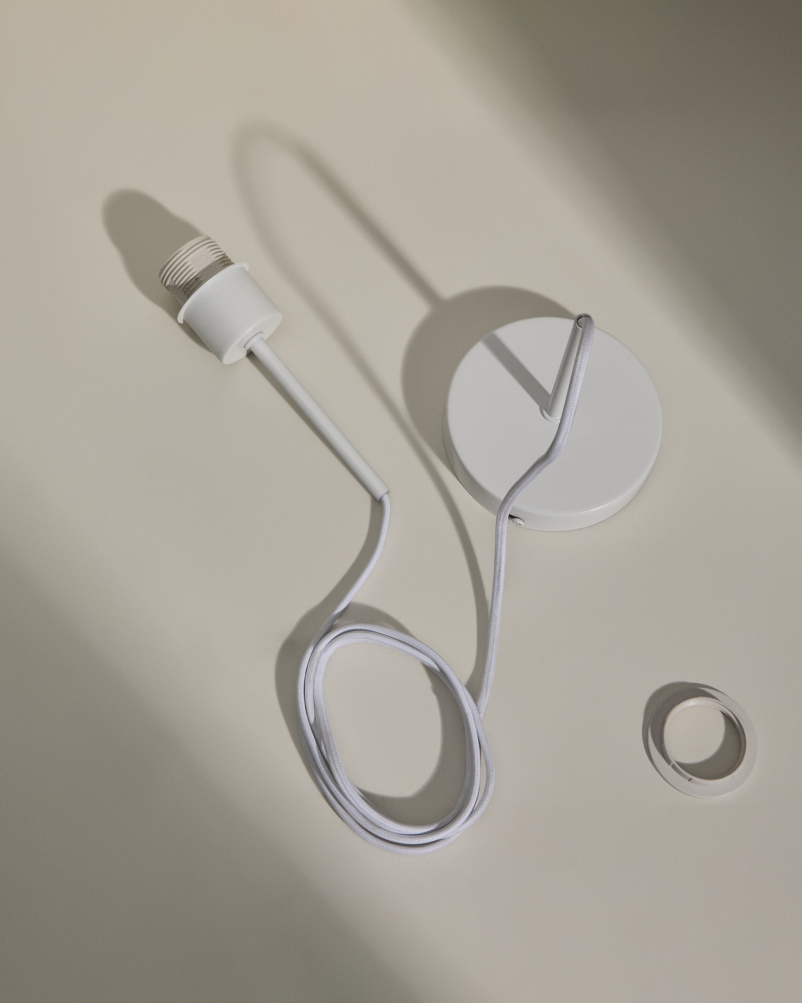 Крепление для потолочного светильника из металла с белой покраской. Белый тканевый кабель, 1,5 м.