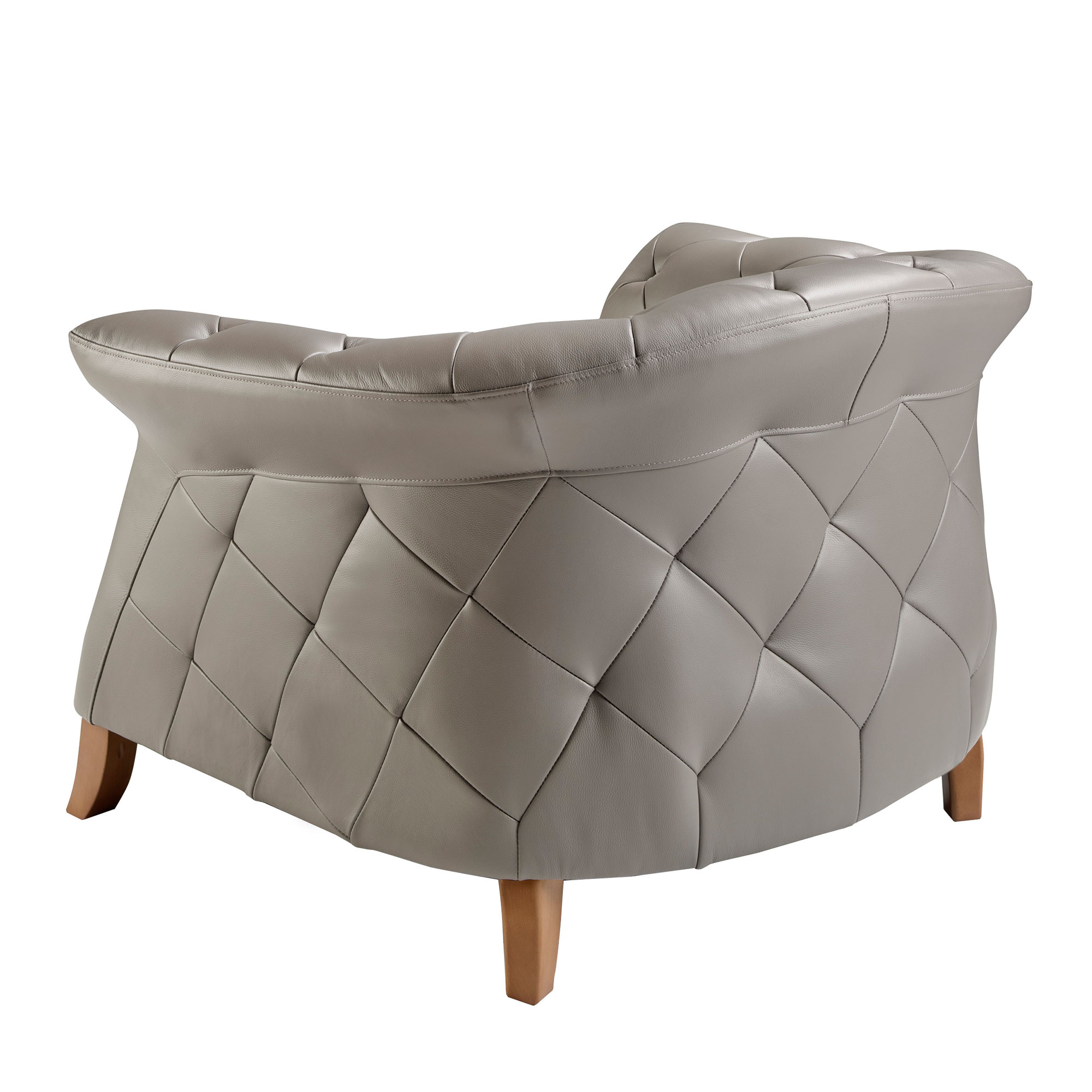 Кожа плотная, гладкая, серого цвета. Внешняя и внутренняя сторона сиденья украшены каретной стяжкой с использованием прочной полимерной нити.
