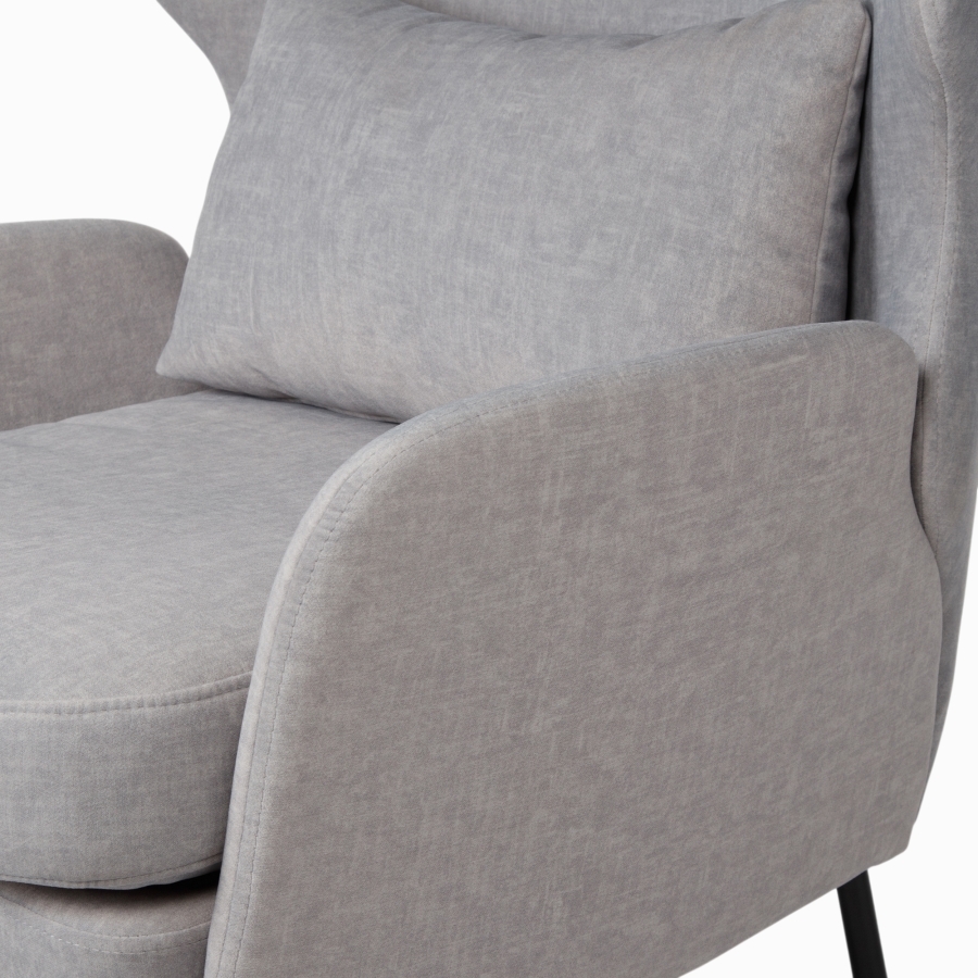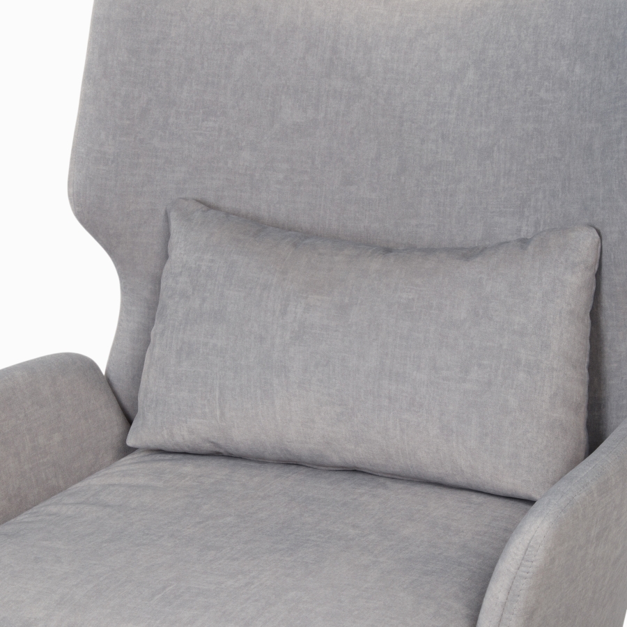 Высокая спинка с "ушками" обеспечивает отличную поддержку для головы и шеи, создавая уютный и обволакивающий эффект. В комплект входит съёмная подушка для поясницы, которая обеспечивает дополнительный комфорт.