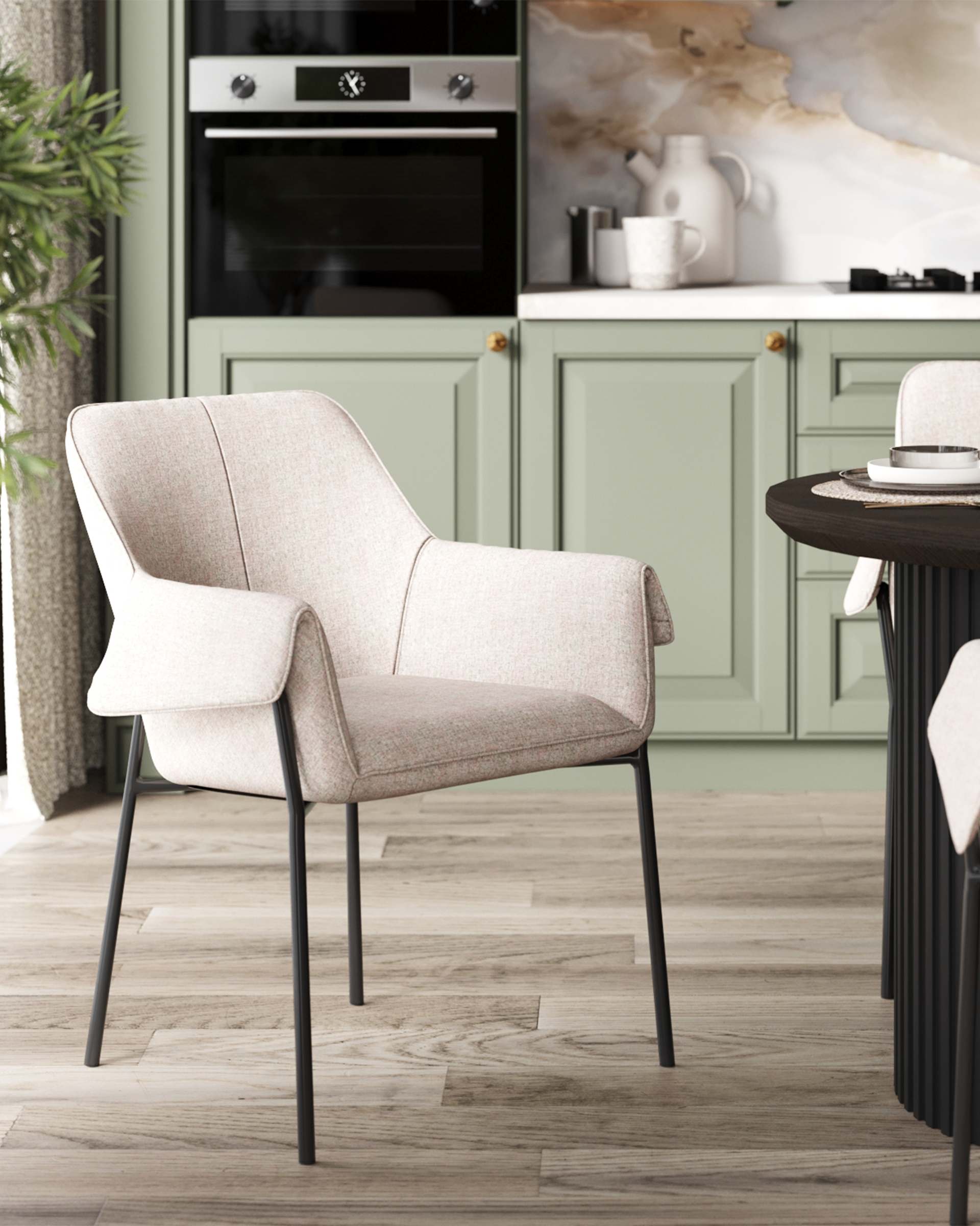 Кресло с подлокотниками Бесс рогожка бежевый ножки металл черные