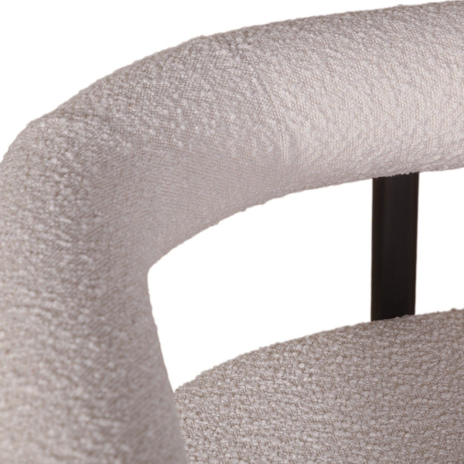 Кресло обтянуто высококачественным букле, которое обеспечивает мягкость, износостойкость и долговечность. Этот материал добавляет изделию особую текстуру и делает его практичным для повседневного использования.