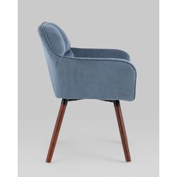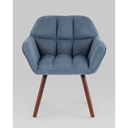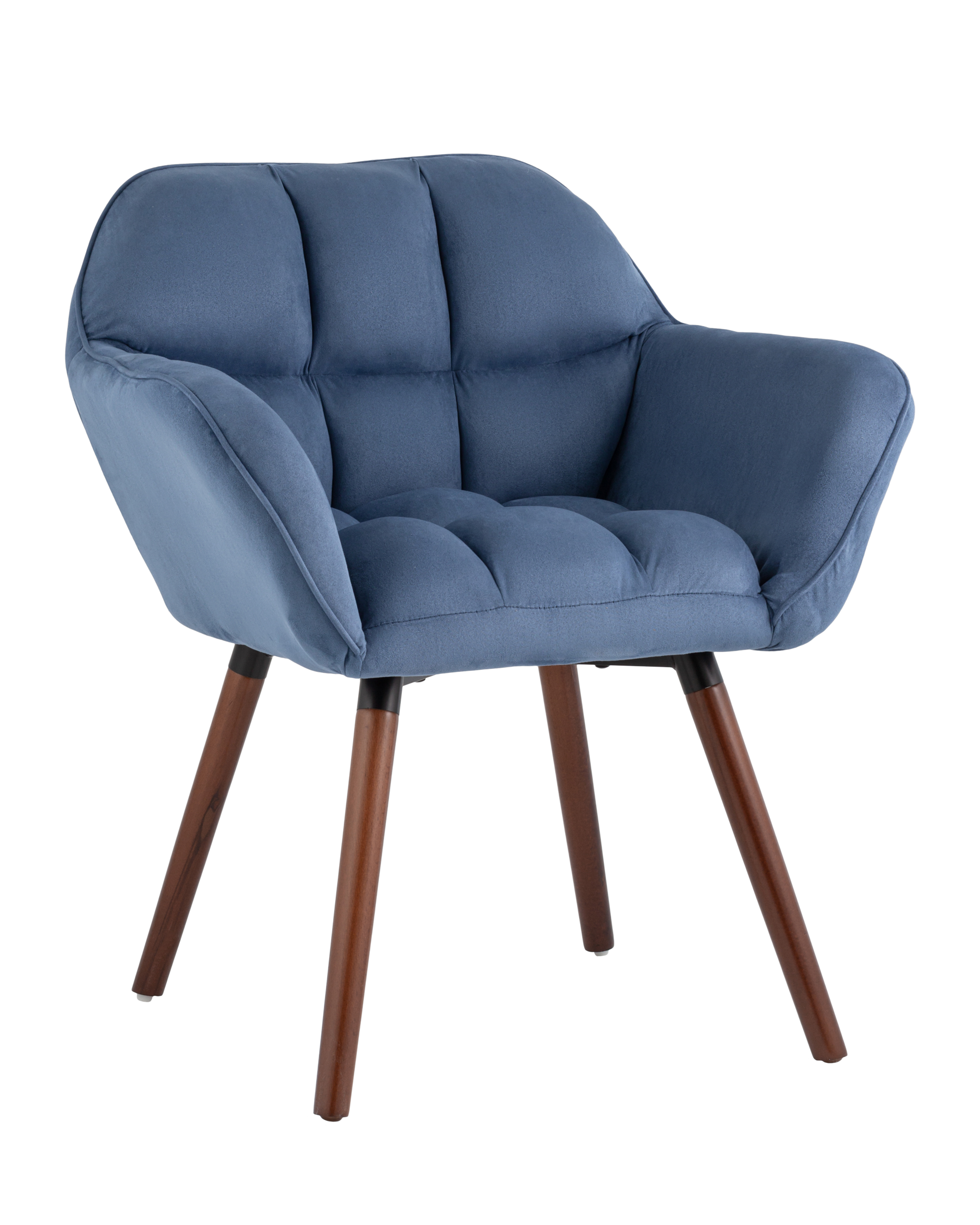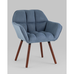 Оригинальное мягкое дизайнерское кресло с удобными подлокотниками. Ножки выполнены из массива бука. В качестве обивки используется износостойкая прочная замша, которая не истирается и не линяет со временем. Кресло отличает толстая спинка и сиденье, украшенные красивой строчкой, которая добавляет креслу интересной фактуры. Каркас металлический, выдерживает нагрузку до 120 кг. Высота подлокотников от пола составляет 62 см.