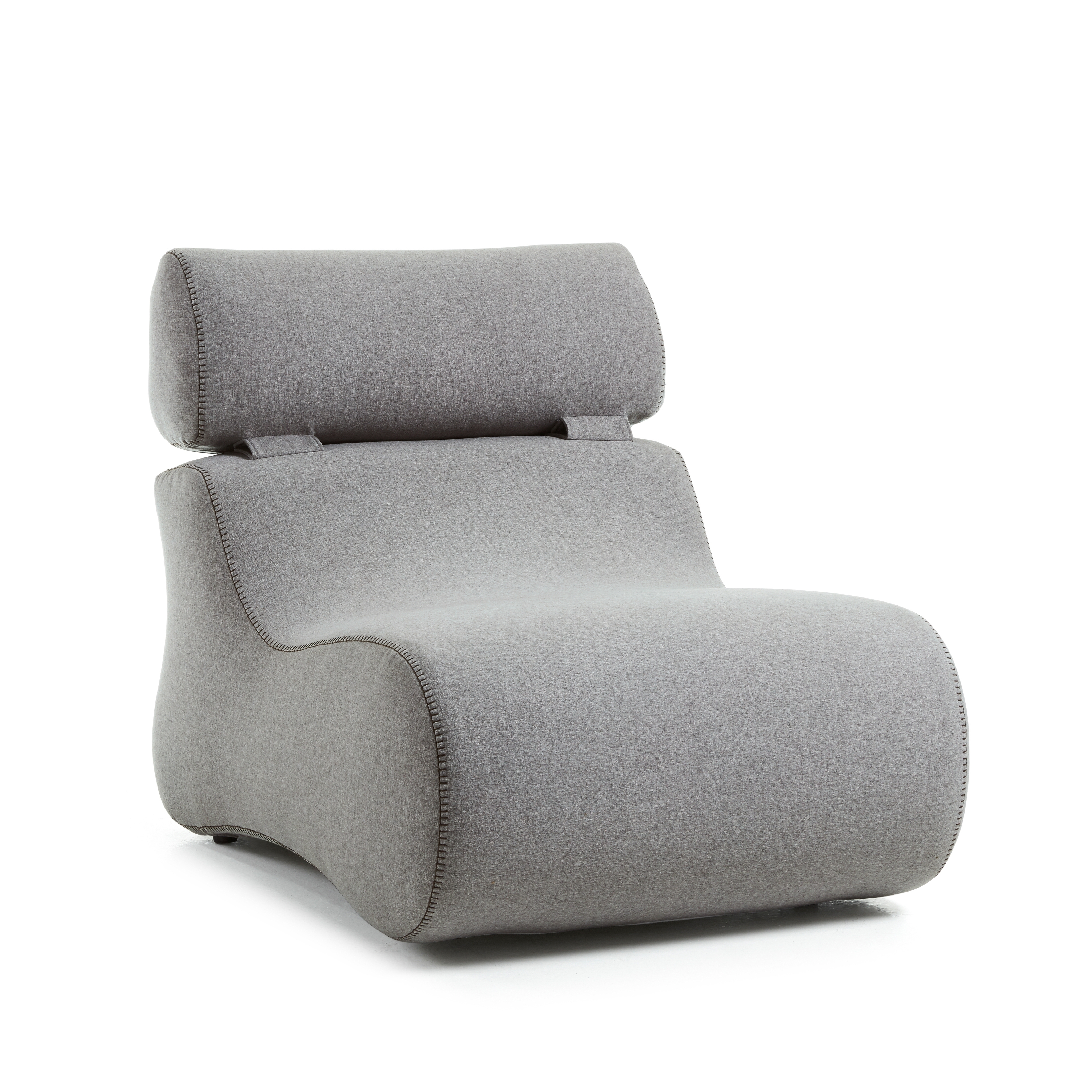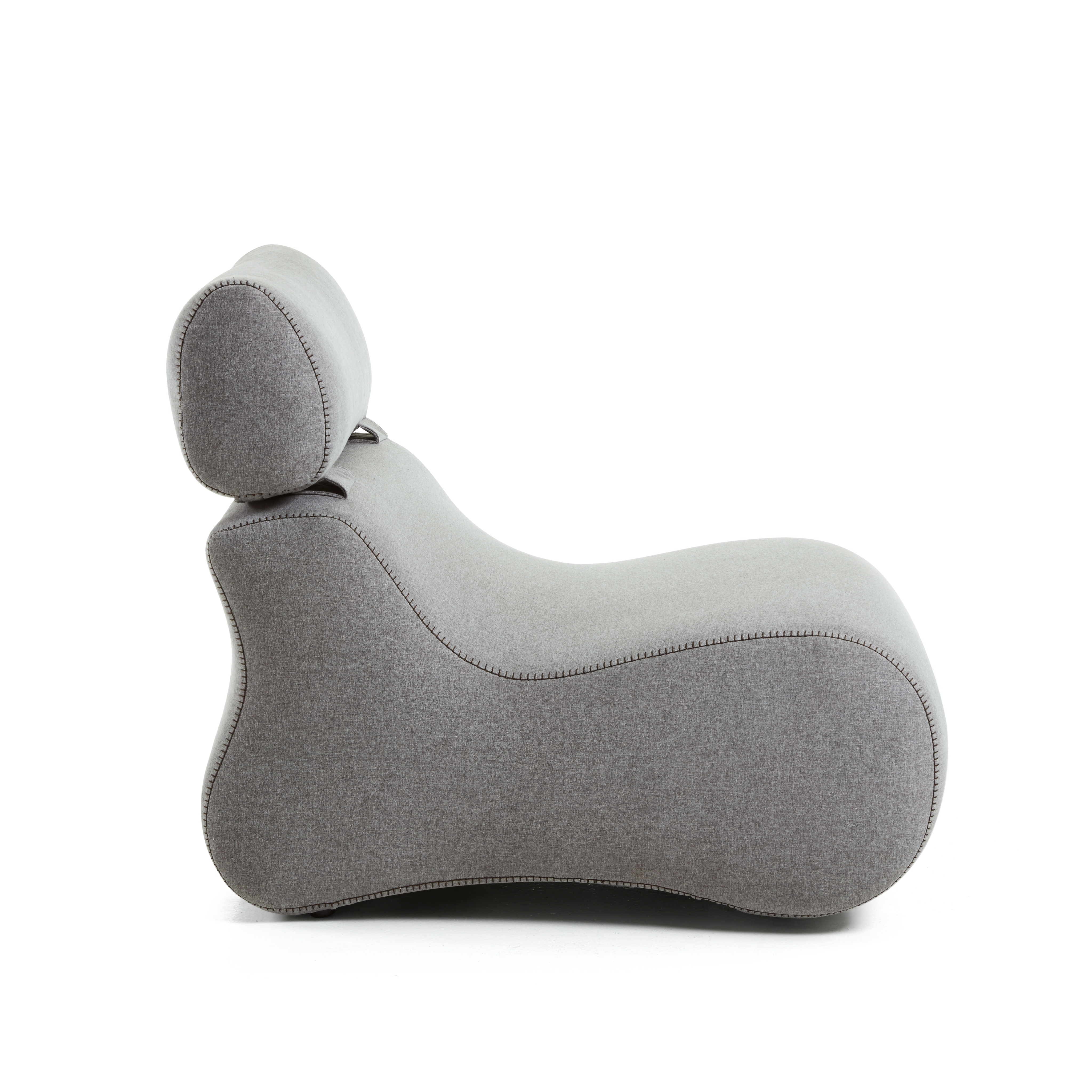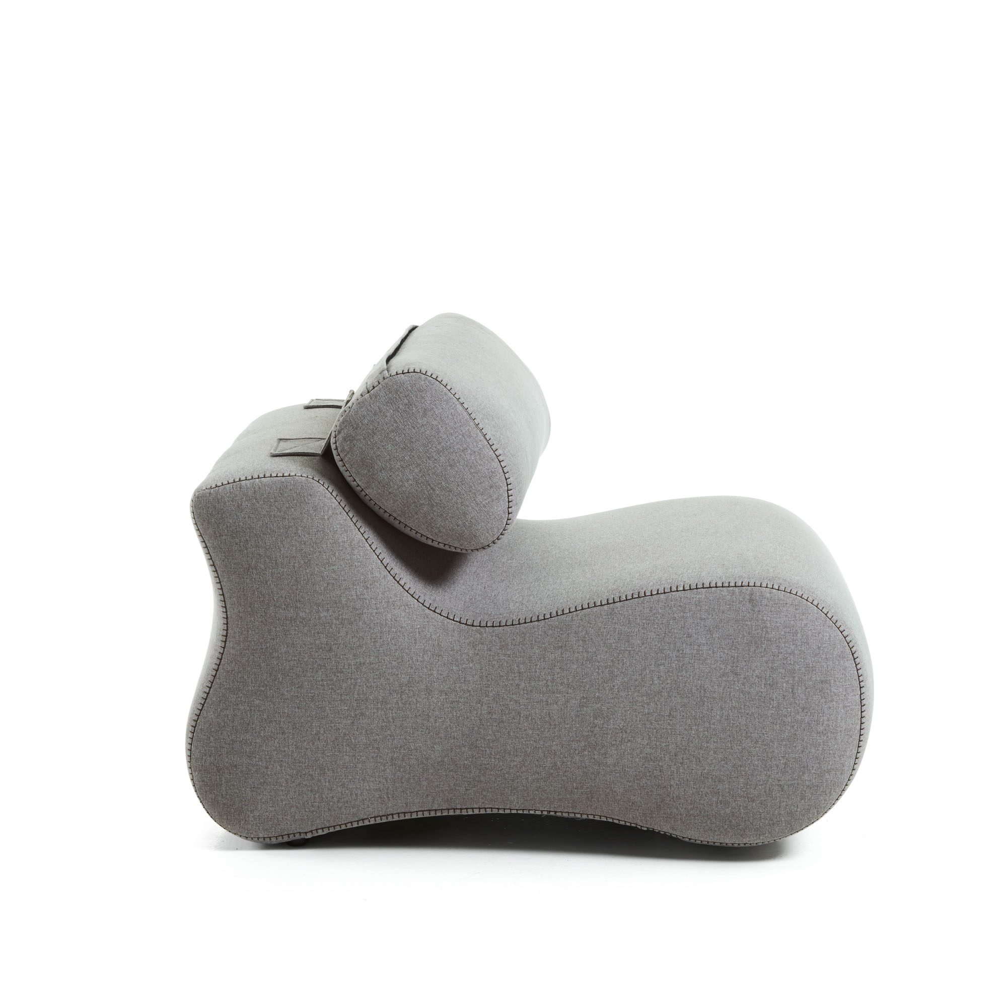 Кресло не имеет каркаса. Сиденье и спинка цельные, сшитые из трех деталей. Внутри — каучуковый наполнитель. Этот материал упругий, гипоаллергенный, долговечный и прочный. Он легко принимает форму сидящего, обеспечивая удобство и мягкость. Для головы сверху предусмотрен складной подголовник в виде валика. При желании его можно опустить или поставить для удлинения спинки.
