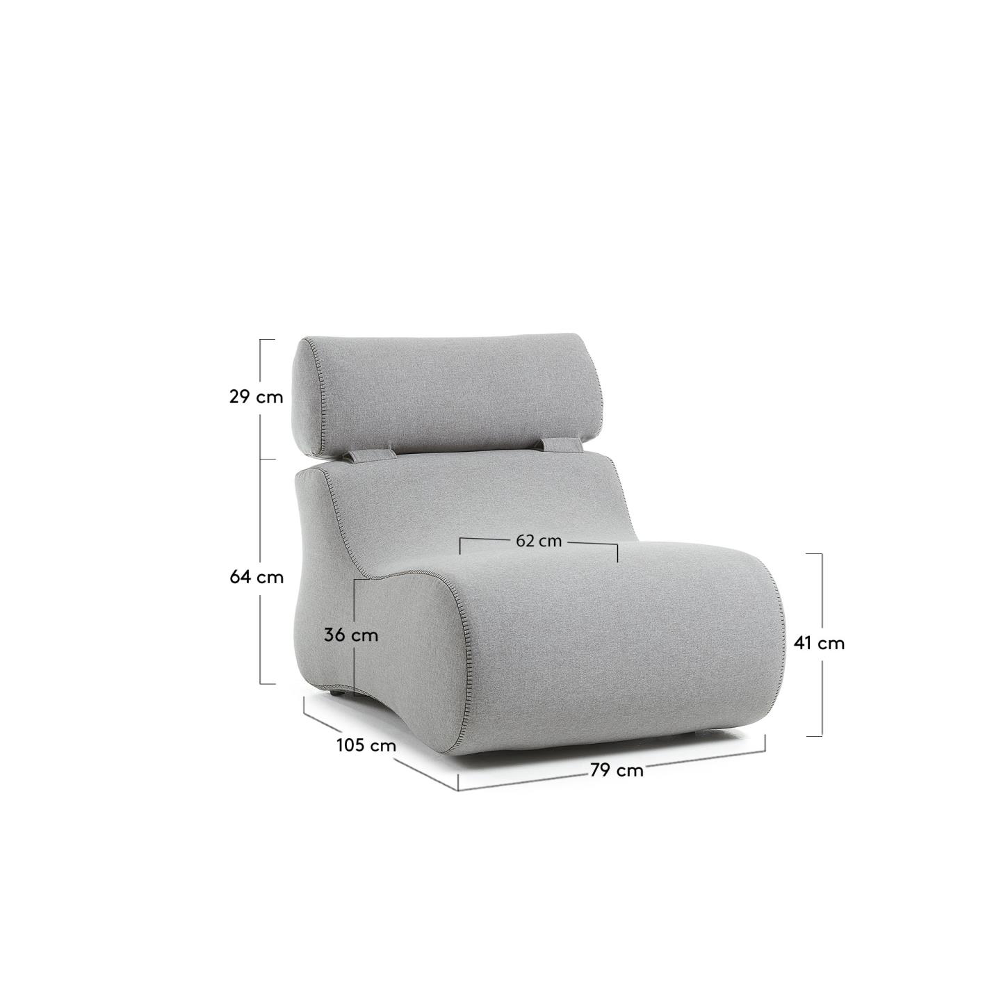 Размеры изделия: ширина — 79 см, глубина — 105 см, высота — 84 см (при поднятой подушке высотой 29 см).