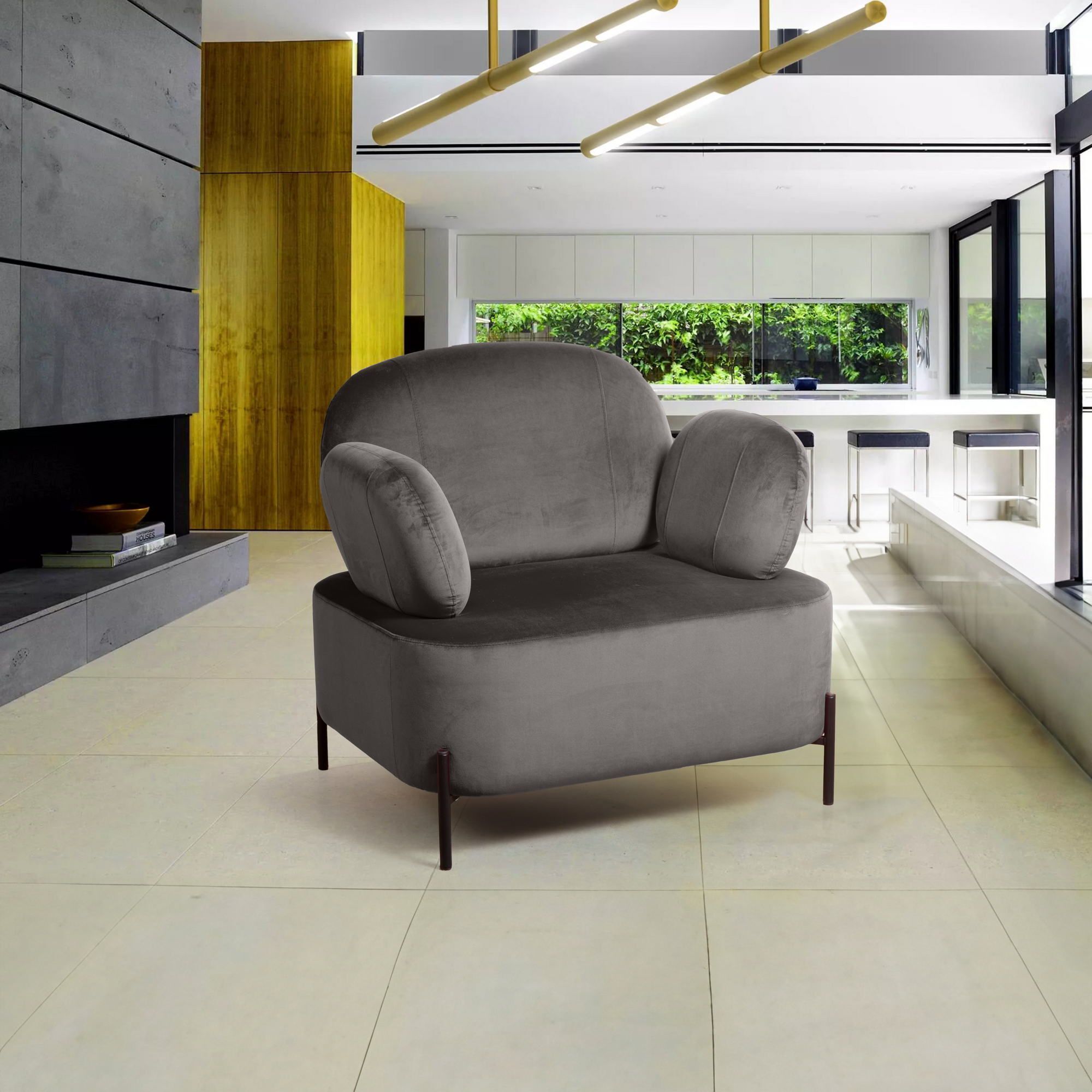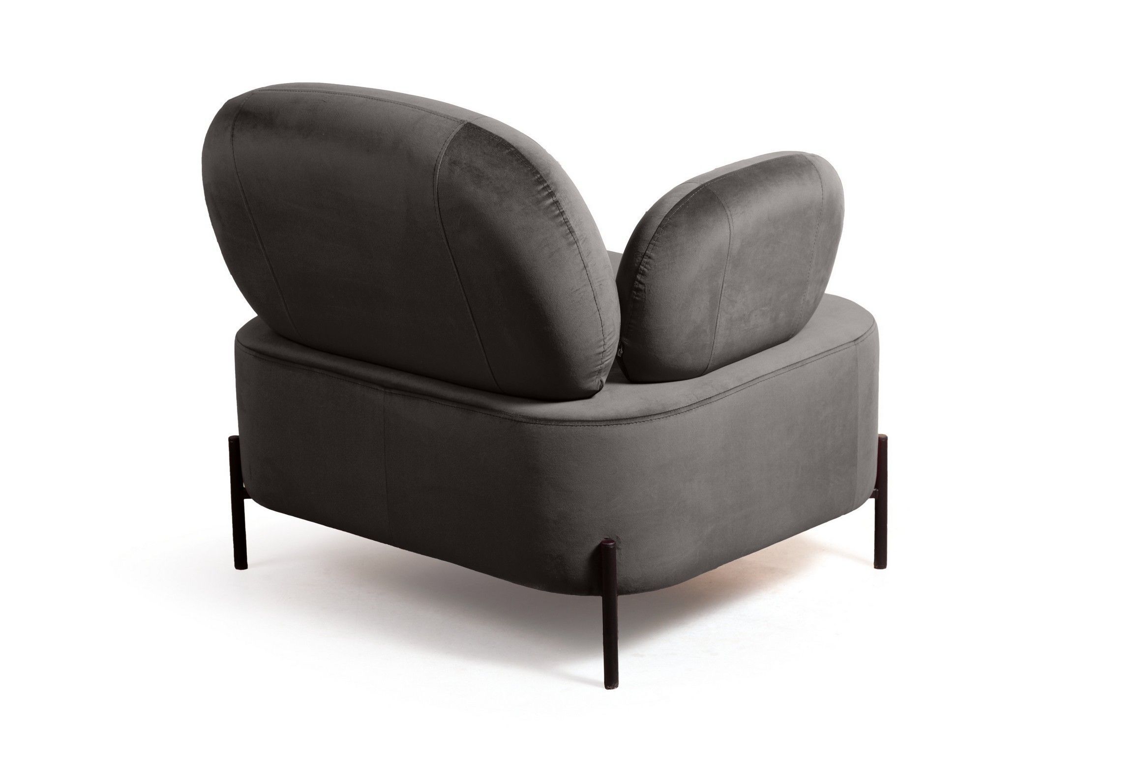 strong*Оттенок может выглядеть по-разному в зависимости от направления ворса./strong Кресло Dandy - настоящий арт-объект, способный стать ярким мебельным акцентом, центром внимания во всём помещении. Стильное, удобное и уютное кресло «Денди» понравится всем, кто любит простую и функциональную мебель. Компактное кресло подойдет для помещения любого размера. Ножки и внешний каркас кресла выполнены из металла, окрашенного на выбор в черный или белый цвет, который выгодно контрастирует с обивкой мягкого сиденья. Отсутствие острых углов, плавность линий и объемность форм говорит об удобстве и безопасности модели. Вертикальные швы на чехлах спинки и подлокотников создают легкий акцент в сдержанном дизайне модели. Металлические опоры дарят прочность конструкции и создают легкий эффект невесомости, приподнимая модель над поверхностью на 12 см