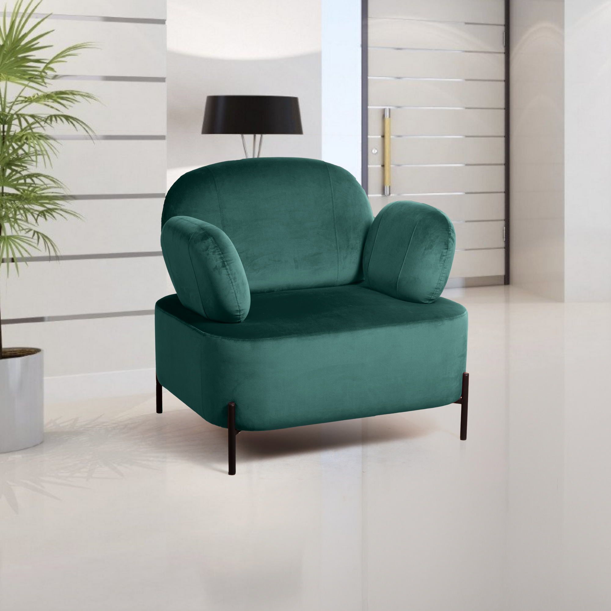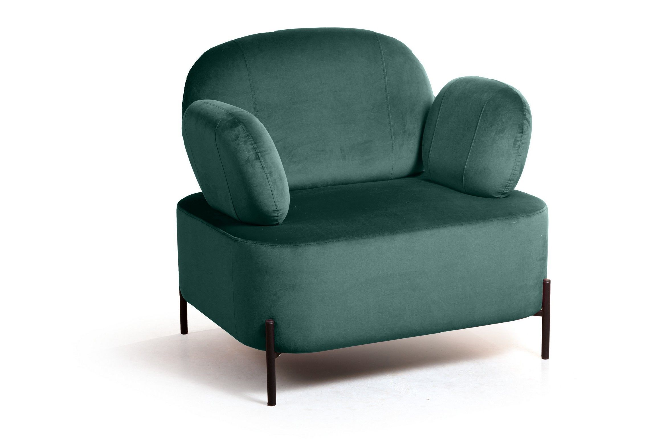 strong*Оттенок может выглядеть по-разному в зависимости от направления ворса./strong Кресло Dandy - настоящий арт-объект, способный стать ярким мебельным акцентом, центром внимания во всём помещении. Стильное, удобное и уютное кресло «Денди» понравится всем, кто любит простую и функциональную мебель. Компактное кресло подойдет для помещения любого размера. Ножки и внешний каркас кресла выполнены из металла, окрашенного на выбор в черный или белый цвет, который выгодно контрастирует с обивкой мягкого сиденья. Отсутствие острых углов, плавность линий и объемность форм говорит об удобстве и безопасности модели. Вертикальные швы на чехлах спинки и подлокотников создают легкий акцент в сдержанном дизайне модели. Металлические опоры дарят прочность конструкции и создают легкий эффект невесомости, приподнимая модель над поверхностью на 12 см