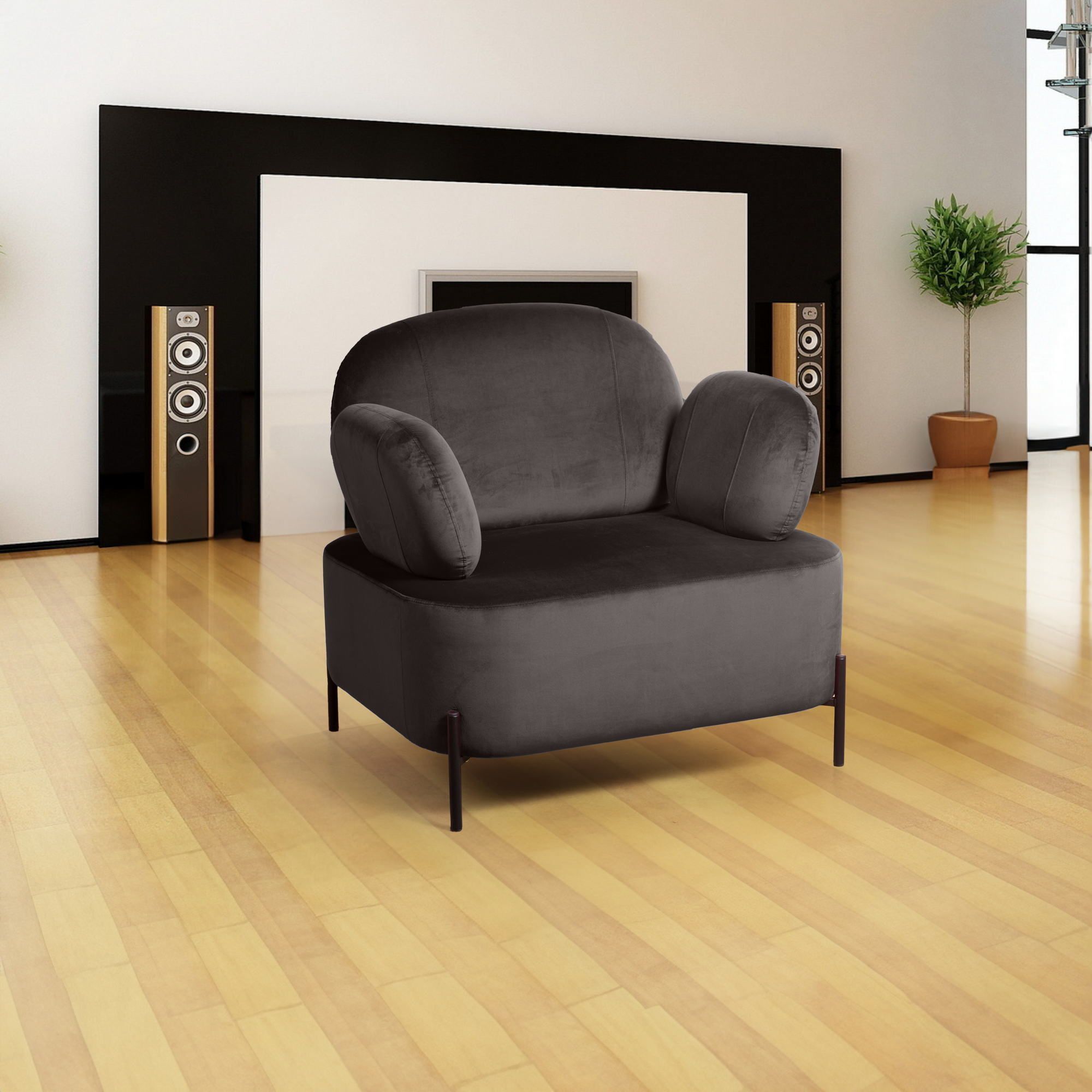 Компактное кресло подойдет для помещения любого размера. Ножки и внешний каркас кресла выполнены из металла, окрашенного на выбор в черный или белый цвет, который выгодно контрастирует с обивкой мягкого сиденья.