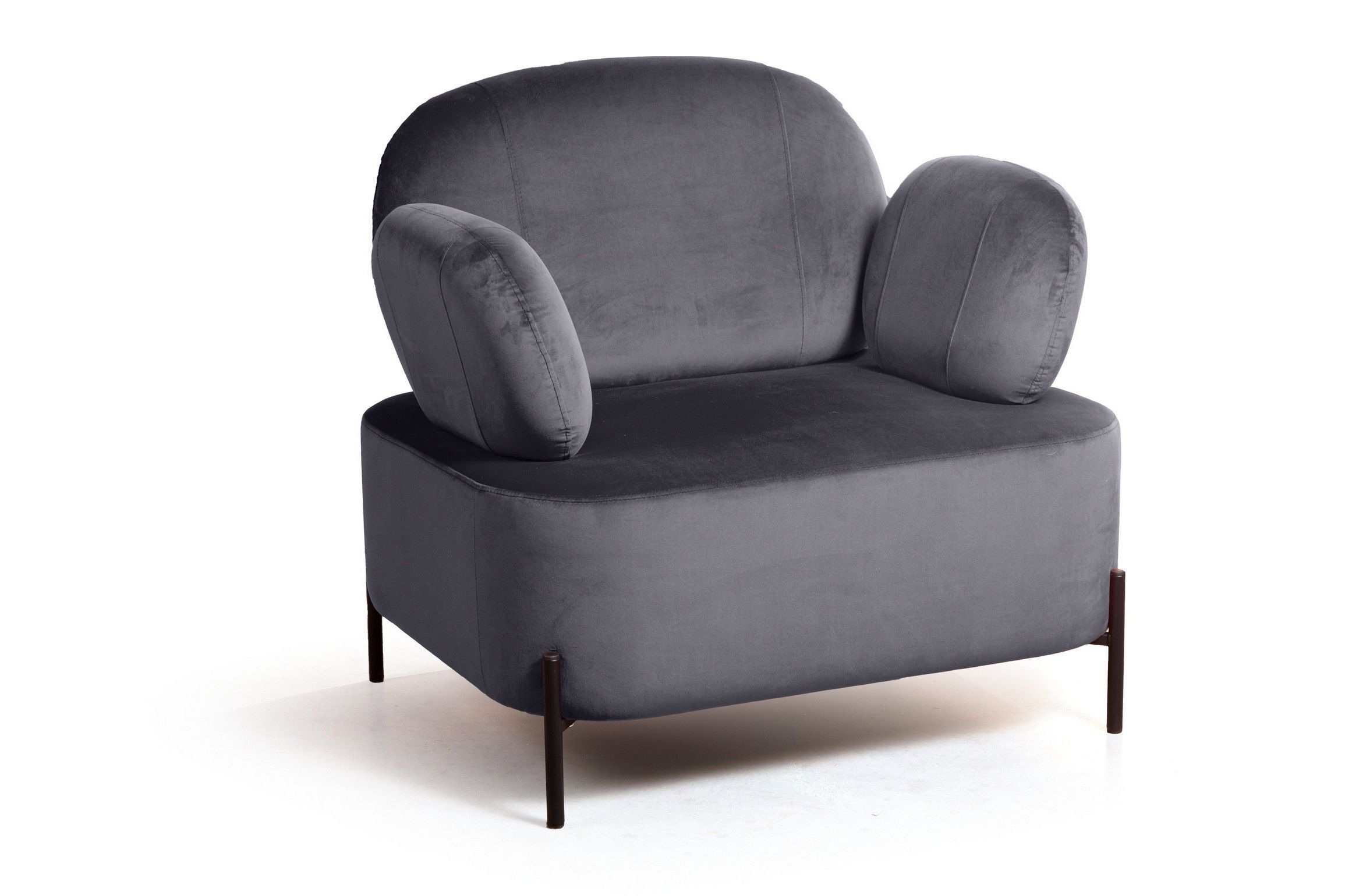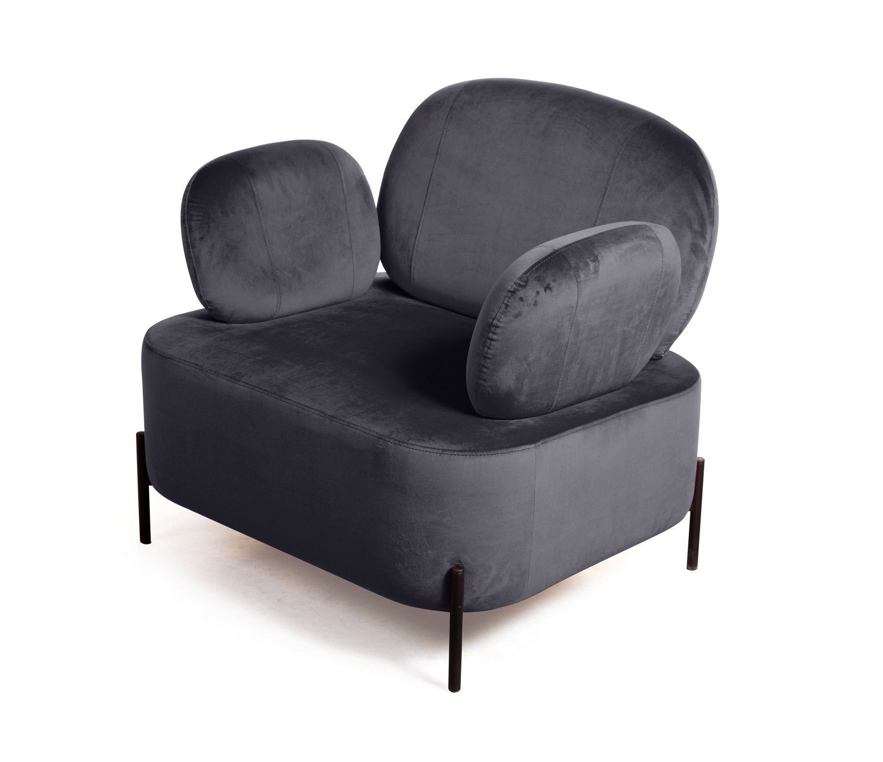 strong*Оттенок может выглядеть по-разному в зависимости от направления ворса./strong Кресло Dandy - настоящий арт-объект, способный стать ярким мебельным акцентом, центром внимания во всём помещении. Стильное, удобное и уютное кресло «Денди» понравится всем, кто любит простую и функциональную мебель. Компактное кресло подойдет для помещения любого размера. Ножки и внешний каркас кресла выполнены из металла, окрашенного на выбор в черный или белый цвет, который выгодно контрастирует с обивкой мягкого сиденья. Отсутствие острых углов, плавность линий и объемность форм говорит об удобстве и безопасности модели. Вертикальные швы на чехлах спинки и подлокотников создают легкий акцент в сдержанном дизайне модели. Металлические опоры дарят прочность конструкции и создают легкий эффект невесомости, приподнимая модель над поверхностью на 12 см