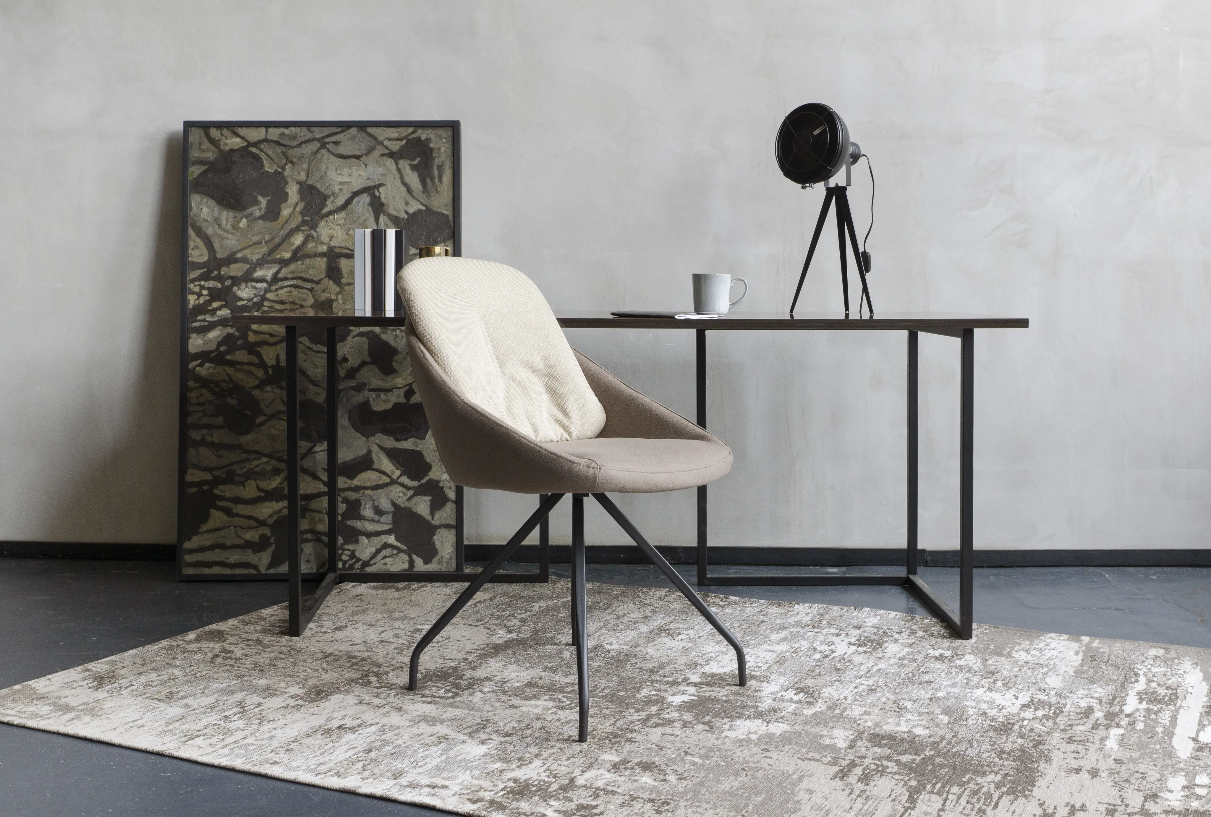 Благодаря основе в виде 4 металлических «лучей» обладает устойчивостью и надежностью. Обивка корпуса — экокожа, подушки — рогожка. Материалы долговечны, устойчивы к истиранию и загрязнениям, просты в уходе. Добавят в интерьер фактурности, тактильности, визуального разнообразия. Кресло Dexter поддержит творческую или деловую атмосферу в вашем пространстве.