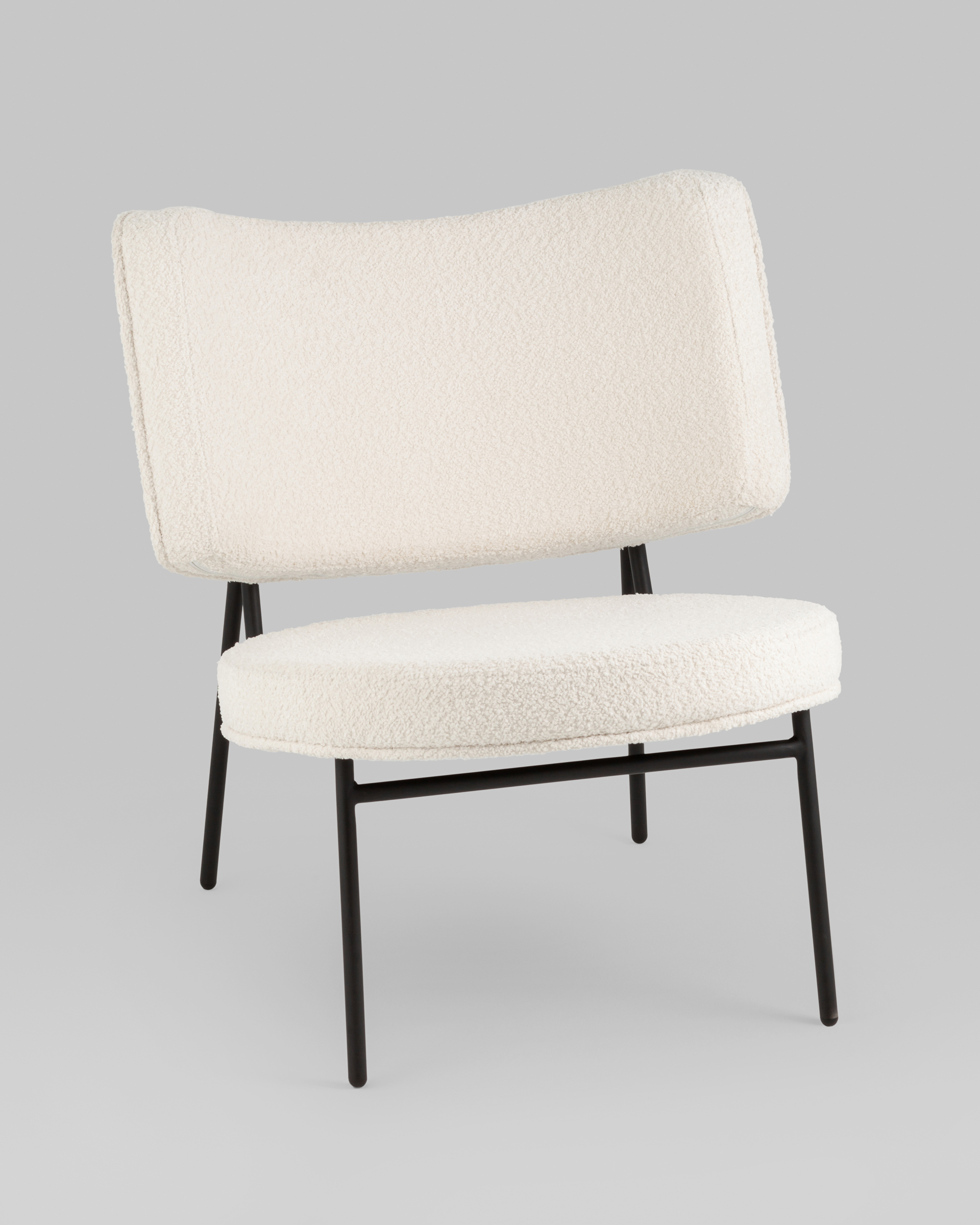 Кресло District Lounge букле белый цельносварной каркас, надежная конструкция