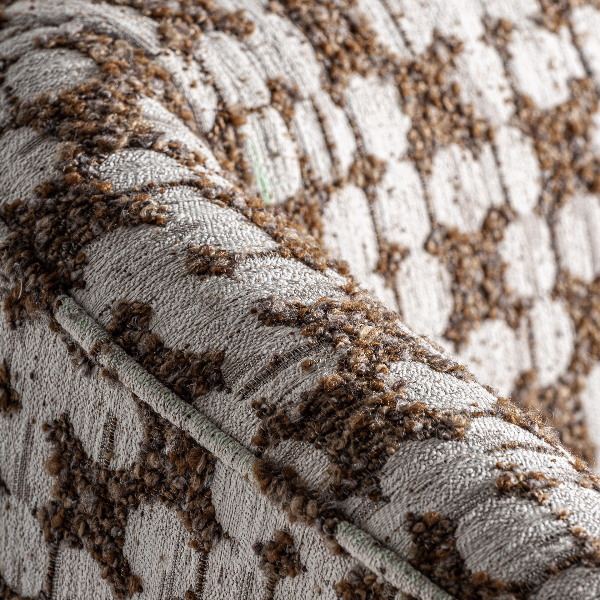 Кресло из белого полиэстера в сочетании с коричневой сосной и каучуковым деревом.