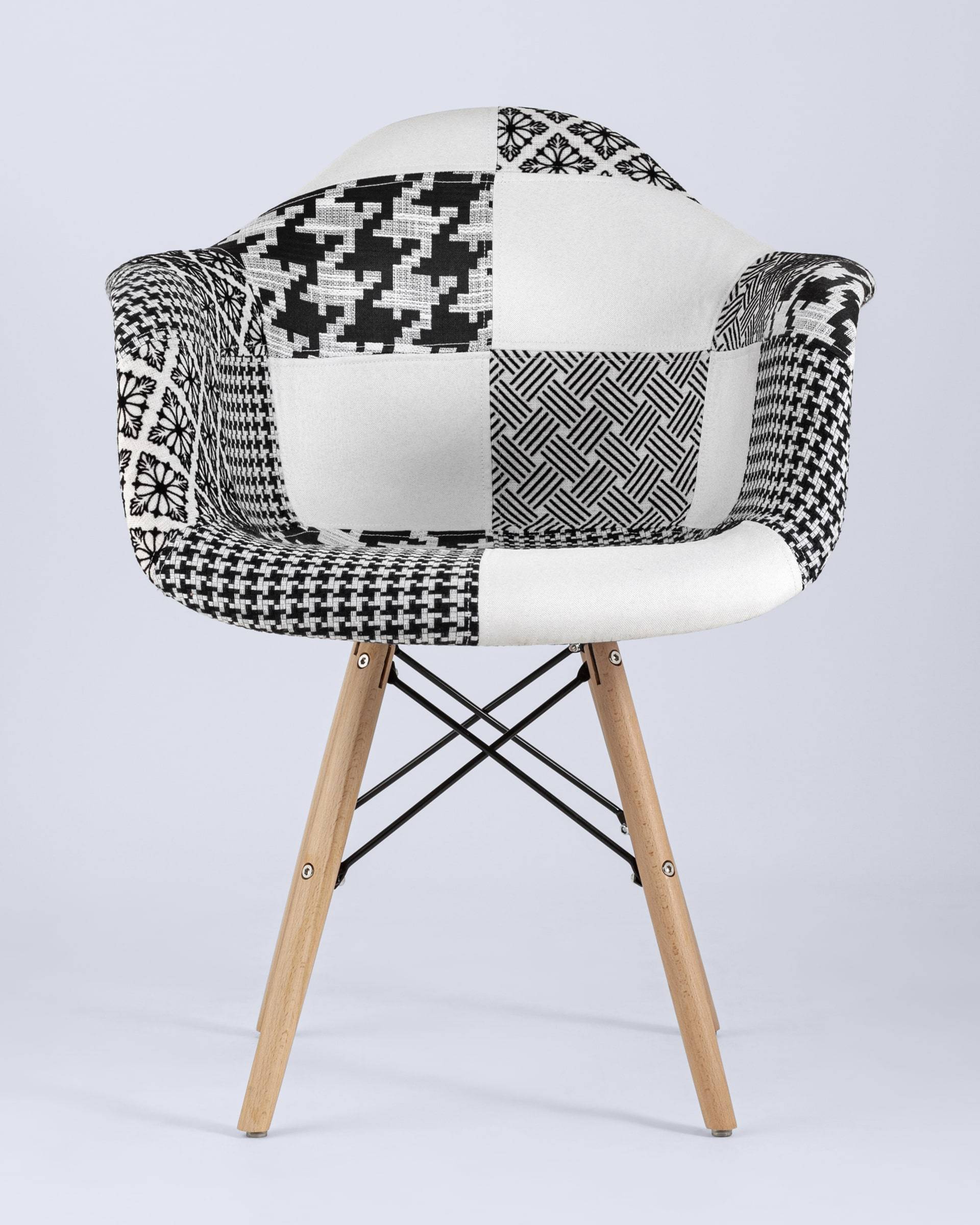 Кресло Eames в стиле пэчворк черно-белое, ножки массив бука