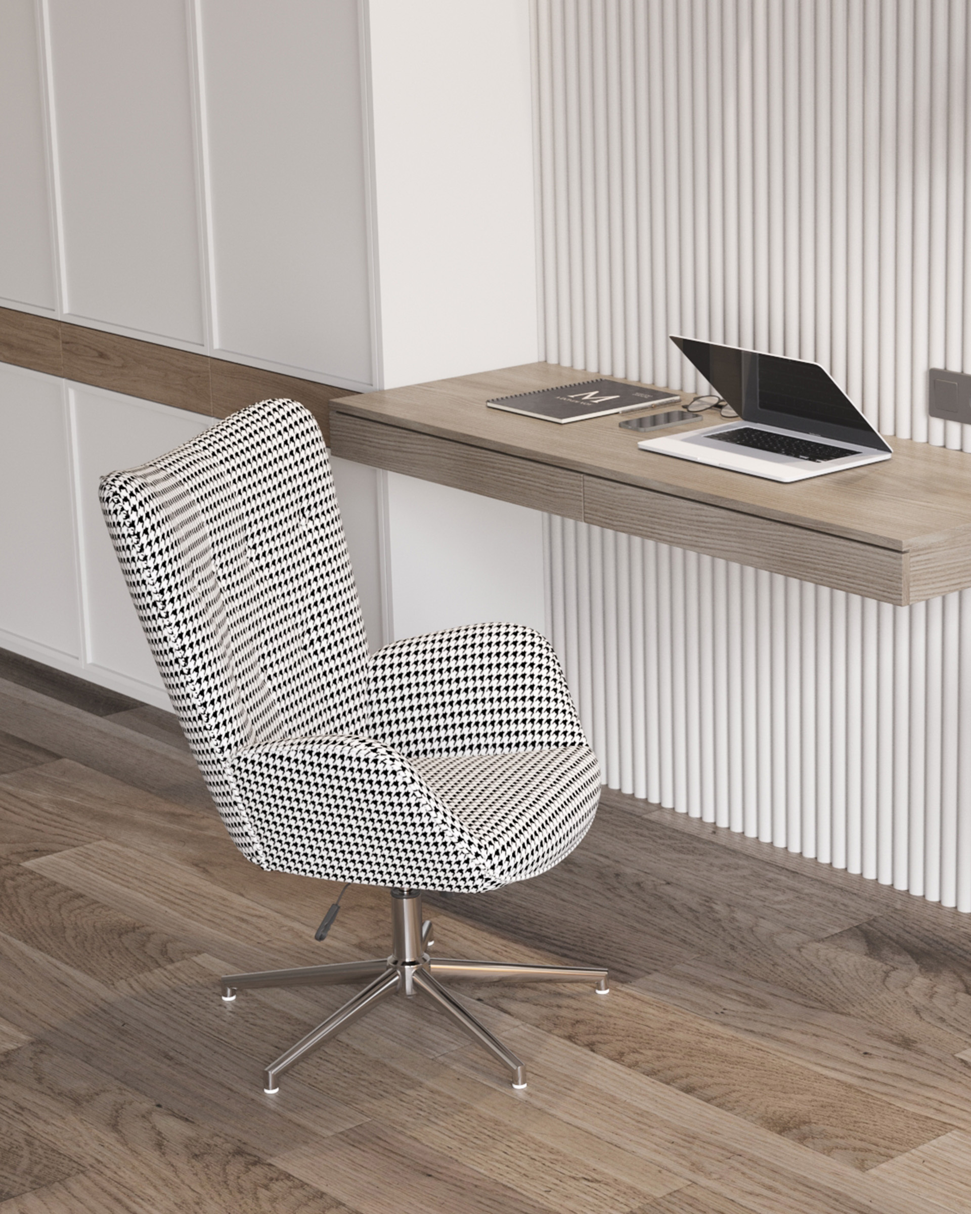 Кресло регулируемое Филадельфия черно-белое мягкое тканевое