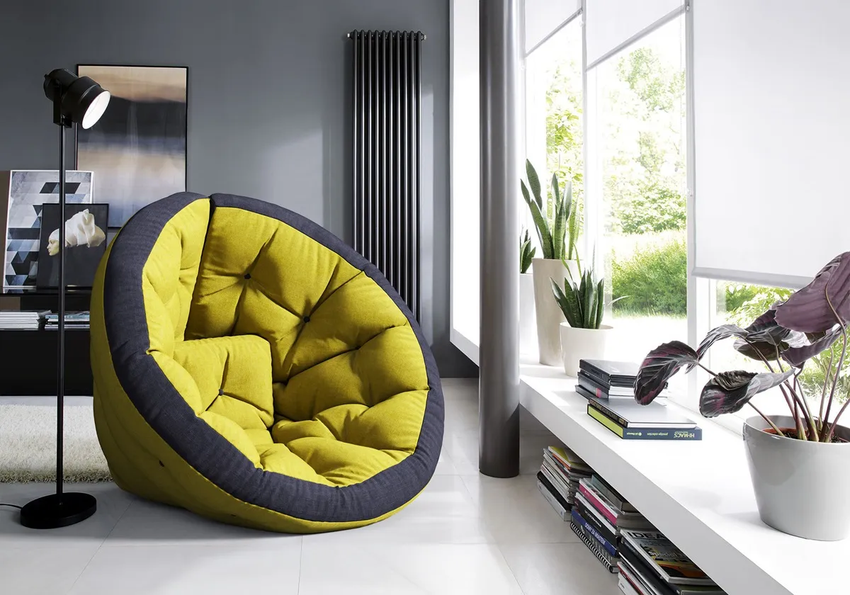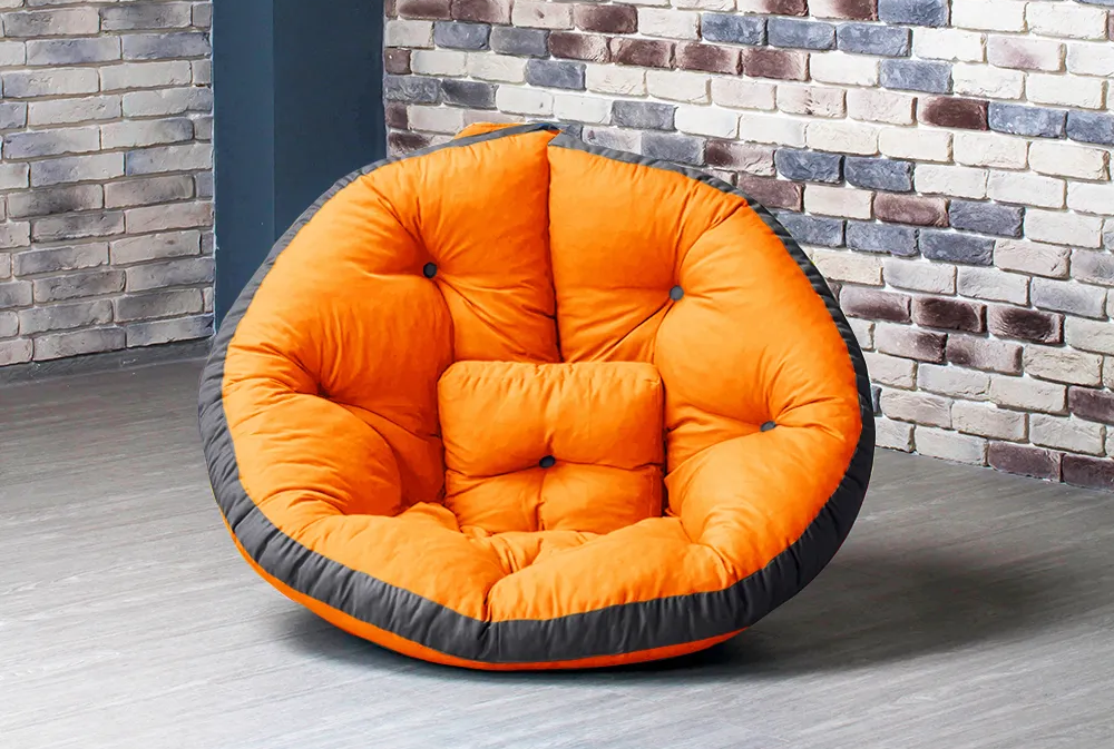 Удобное кресло-трансформер с двухцветным чехлом. Размер можно подобрать под свой рост: от S до XL. Вес — от 8 кг. Толщина — 12 см.