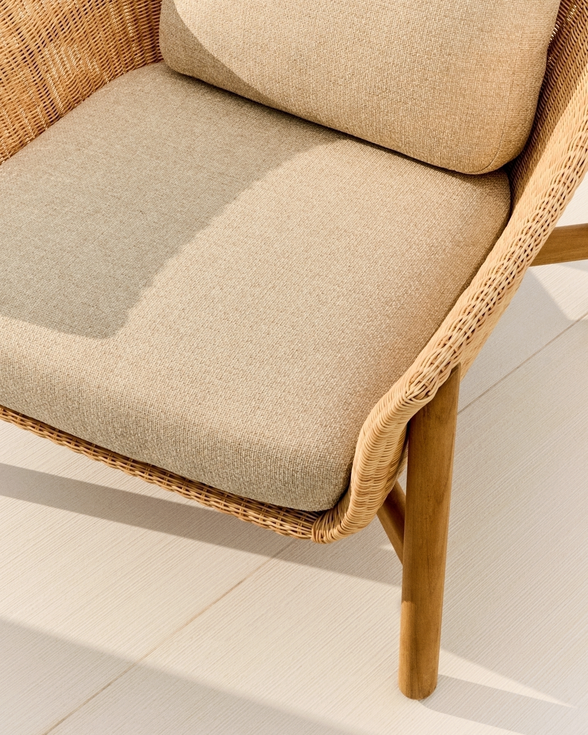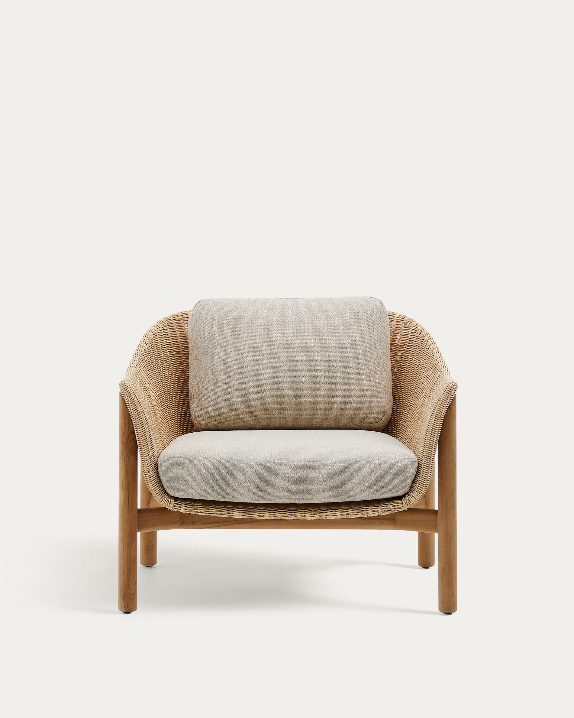 Коллекция Galea, разработанная Made Studio для Kave Home, — это дань уважения традиционному мастерству, адаптированному к современным потребностям. Каждое изделие — это идеальное сочетание эксклюзивного дизайна и функциональности, созданное на века и гармонично вписывающееся в любое пространство на улице или в помещении. Твердое дерево тикового дерева, сертифицированное FSC 100%™, не только гарантирует экологичность и ответственное лесопользование, но и дарит естественное тепло, которое подчеркивает красоту каждого изделия. Синтетический ротанг ручной работы, имитирующий плетение, обеспечивает исключительную устойчивость к атмосферным воздействиям и очень прост в уходе. Комфорт и практичность лежат в основе этой коллекции. Подушки со съемными чехлами, покрытыми сетчатой пеной, которая пропускает воду через подушку, не задерживаясь внутри, и быстро сохнет, разработаны таким образом, чтобы обеспечить комфорт пользователя, подходящего для использования на открытом воздухе. Чтобы сохранить натуральность этих изделий с течением времени, мы рекомендуем наносить средство Sterina wood protector не реже двух раз в год.