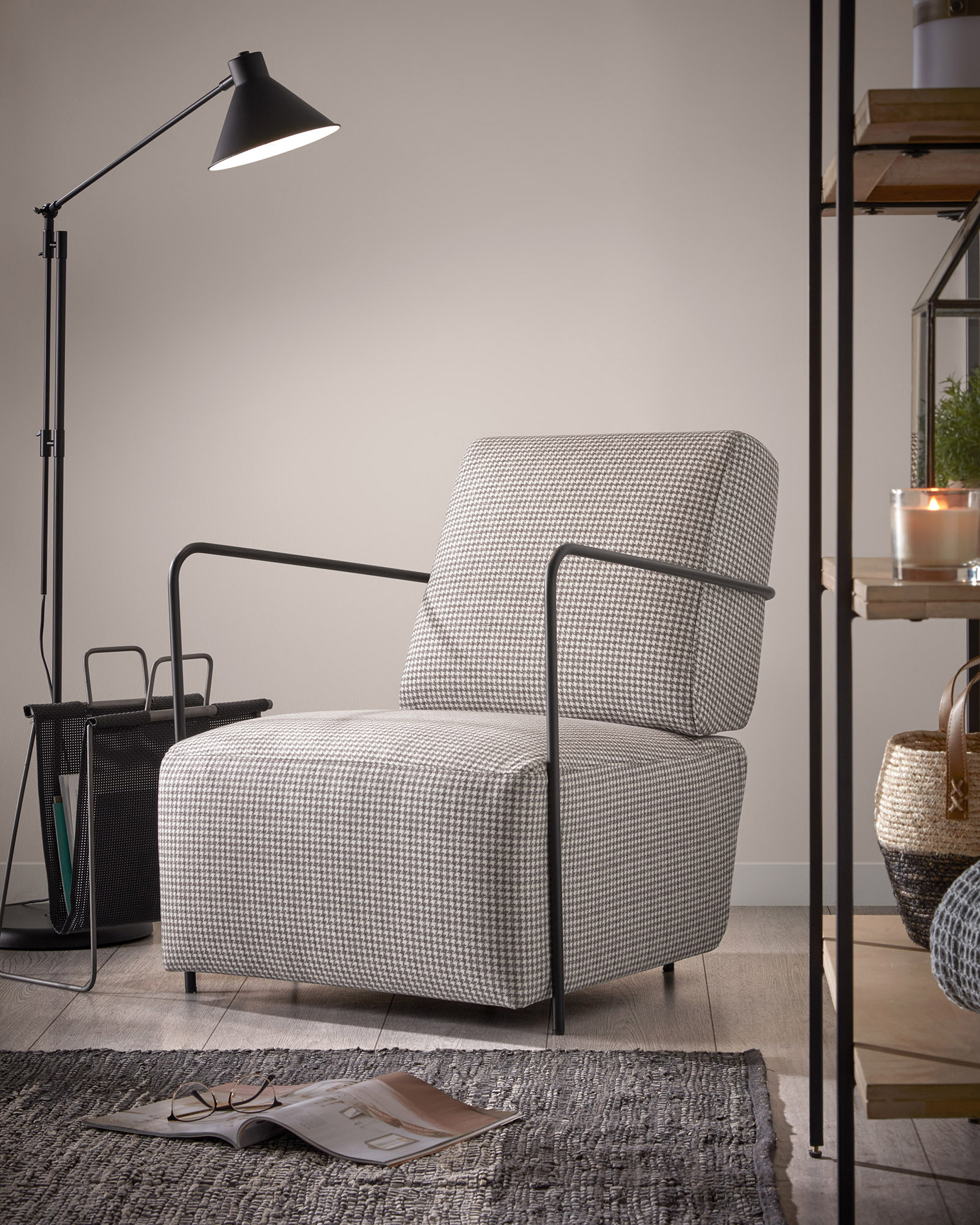 Данная модель создана в современном стиле, но с нотами эпохи конца 20-го века. В основе конструкции — две большие подушки (спинка и сиденье) и рамки, сдерживающие их с обеих сторон.