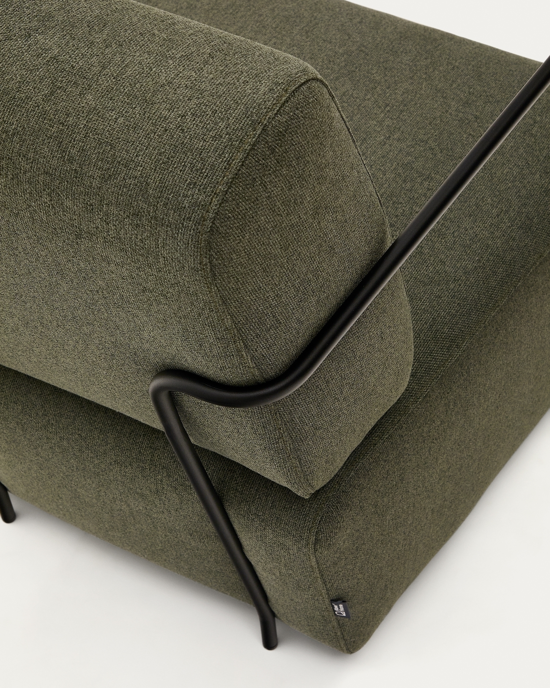 Это эксклюзивное дизайнерское кресло от Kave Home имеет тонкую стальную структуру на подлокотниках, а сиденье и спинка заполнены пеной и акриловыми волокнами для среднего комфорта сидения. Его внутренняя структура изготовлена из сосновой древесины и ДСП E0.
